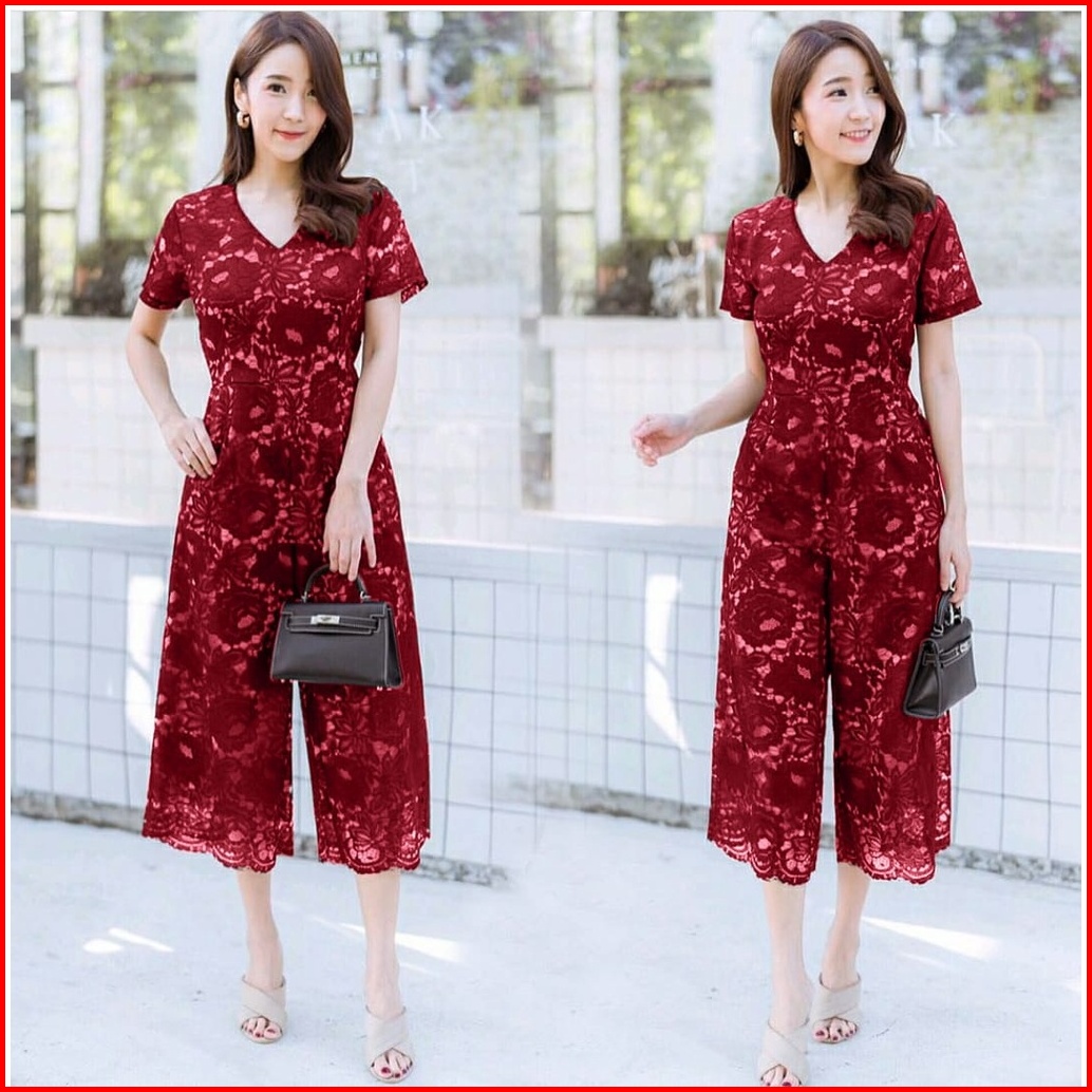 Jumpsuit Sara Bahan Brukat Lapis Furing Uk Xl Ld 104cm Pjg 105cm Belakang Sleting . Mc