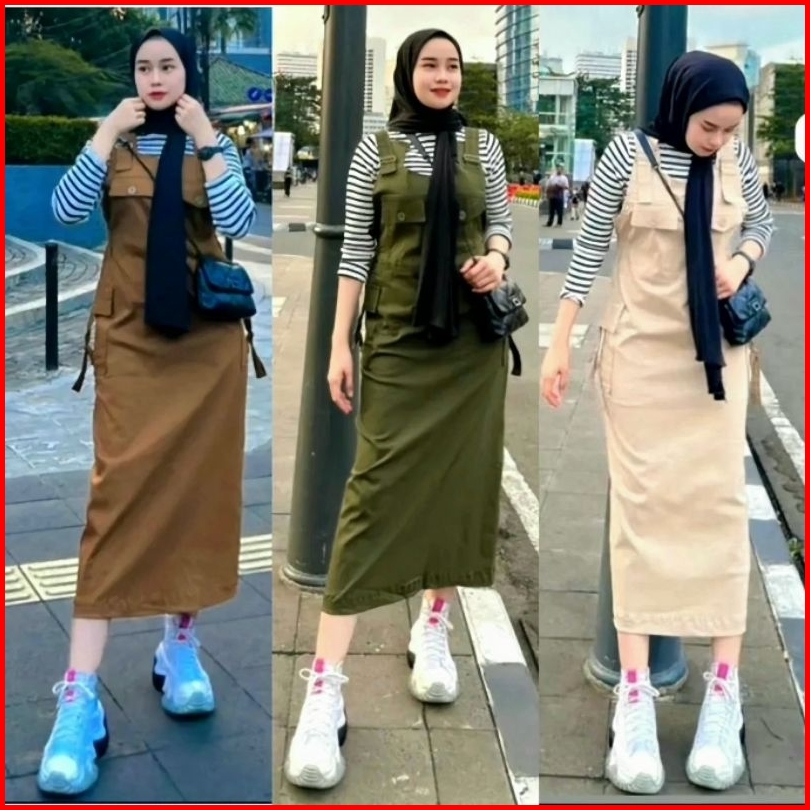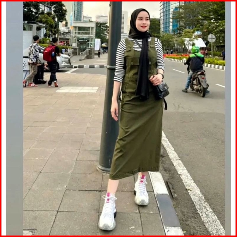 Bellia Overall Rok Cargo Wanita Cotton Premium Jumpsuit Rok Casual Overall Rok Trendi