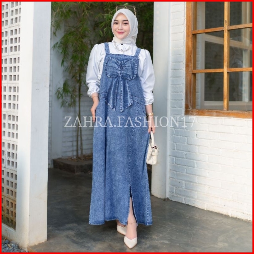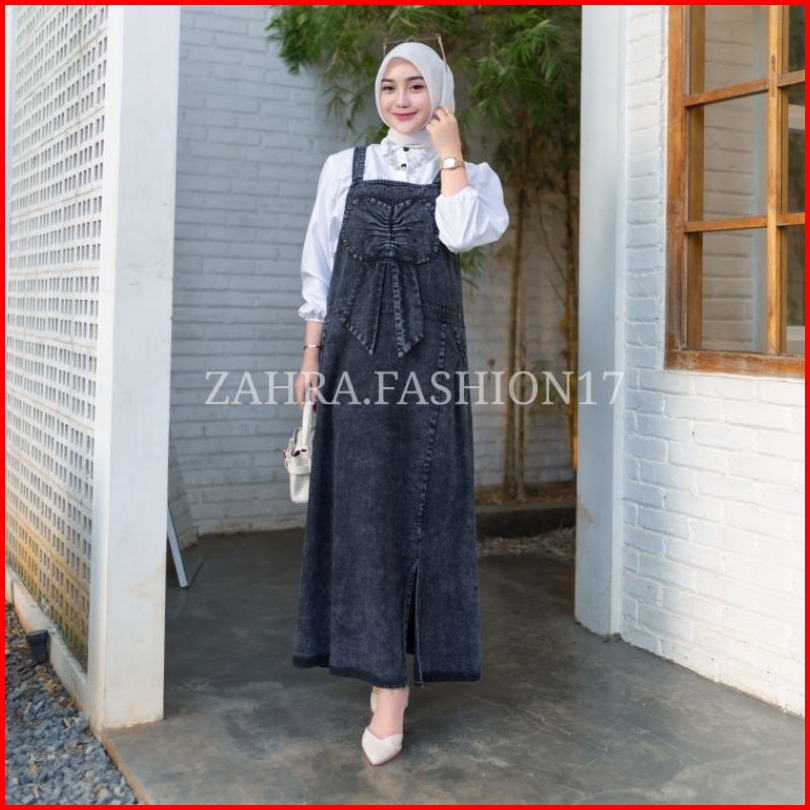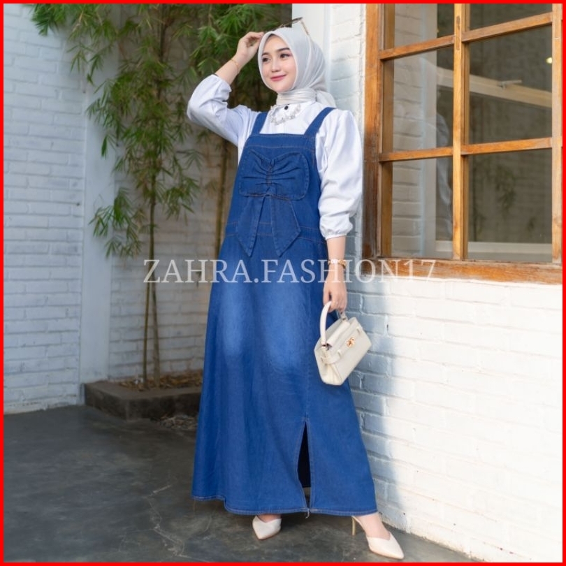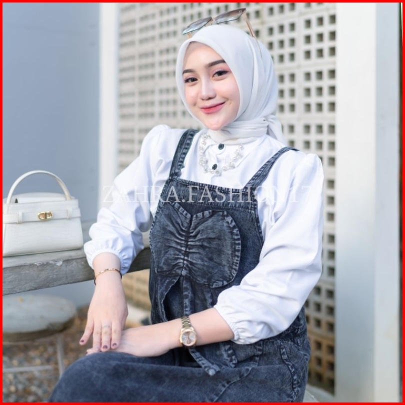 Zahra Overall Set Jeans Wanita Dan Remaja Terbaru Viral Model Kekinian Cantik Nyaman Soft Denim