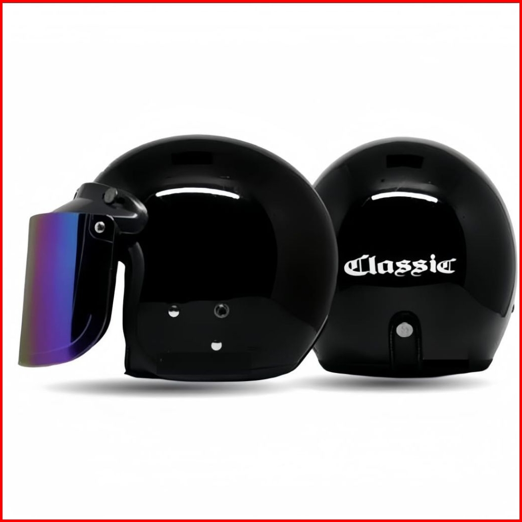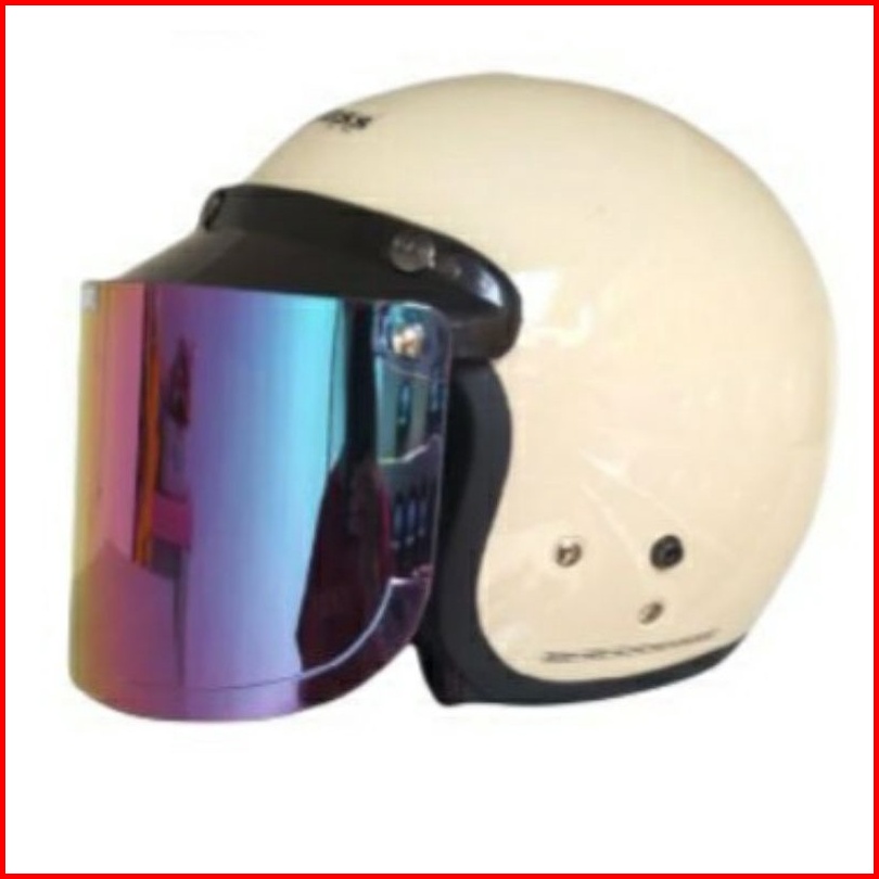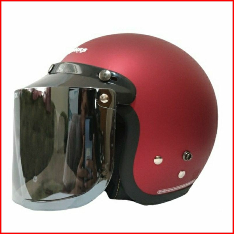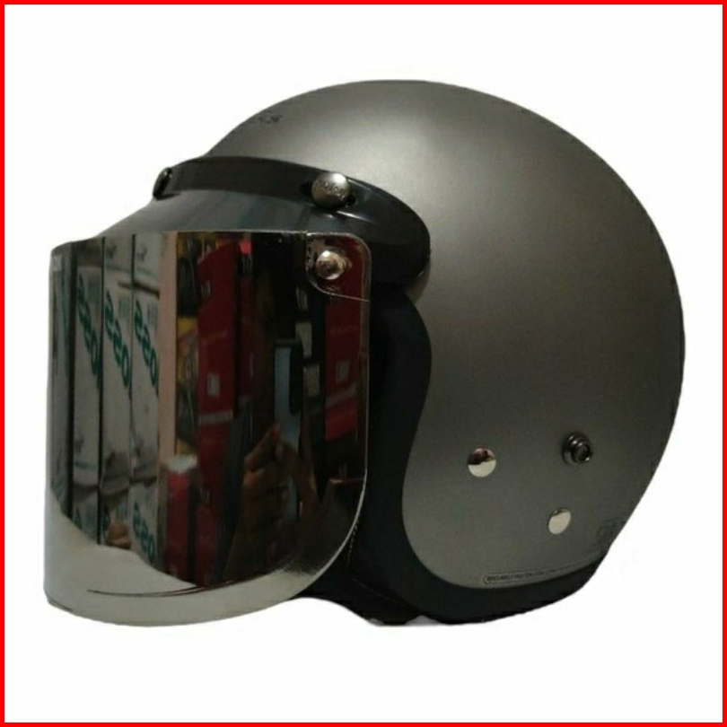 Helm Bogo Polos Dewasa Pria Wanita Full Leher Kaca Datar Helm Bogo Kaca Flat Smoke