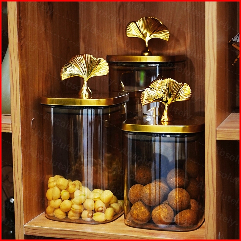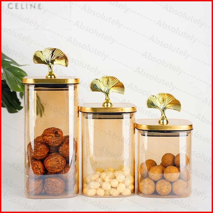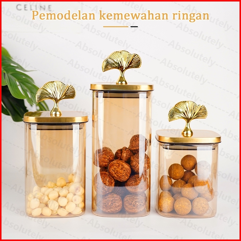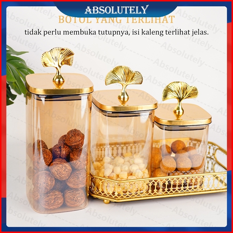 Toples Kaca Set Mewah Toples Kue Kering Tertutup Botol Madu Lemon Transparan Botol Kaca Besar Toples Penyimpanan Teh Bum