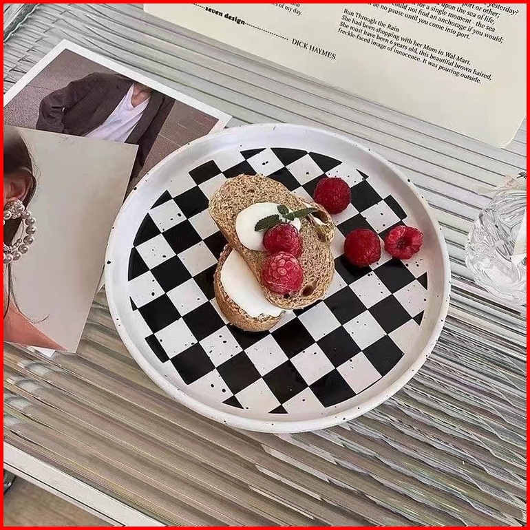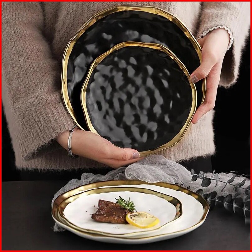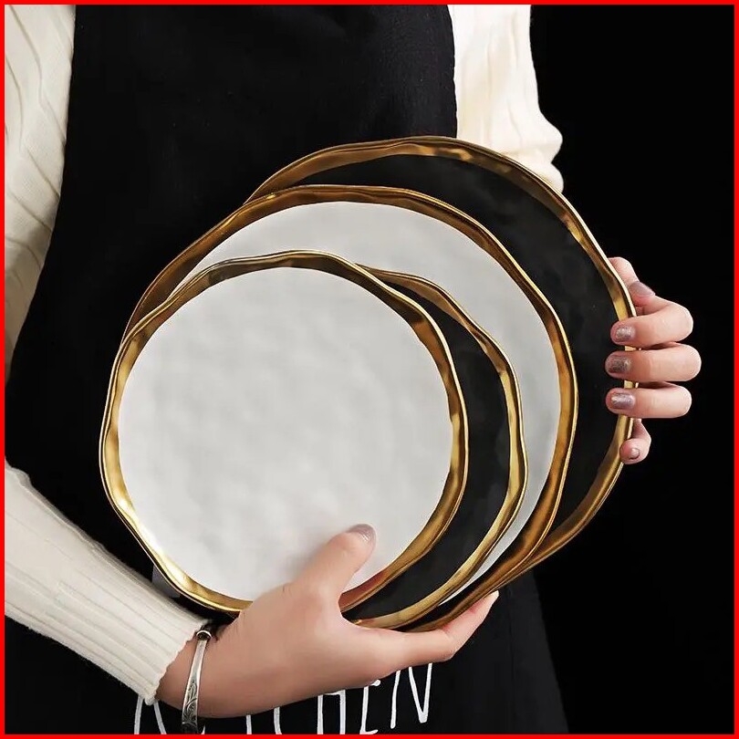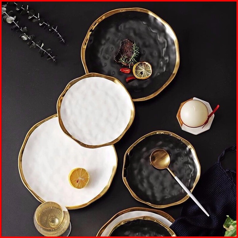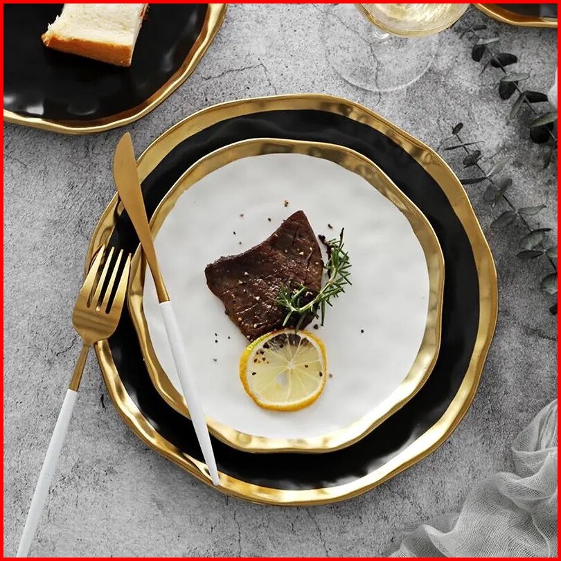 Garansi Pecahgold Rim Black Matte Dishes Ceramic Tray Plate Piring Makan