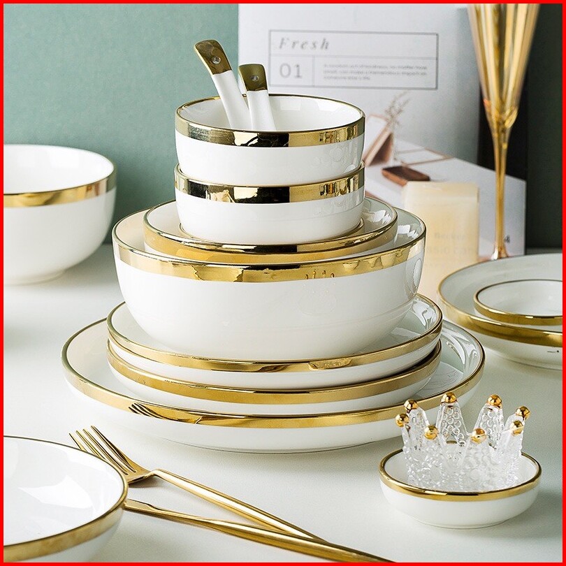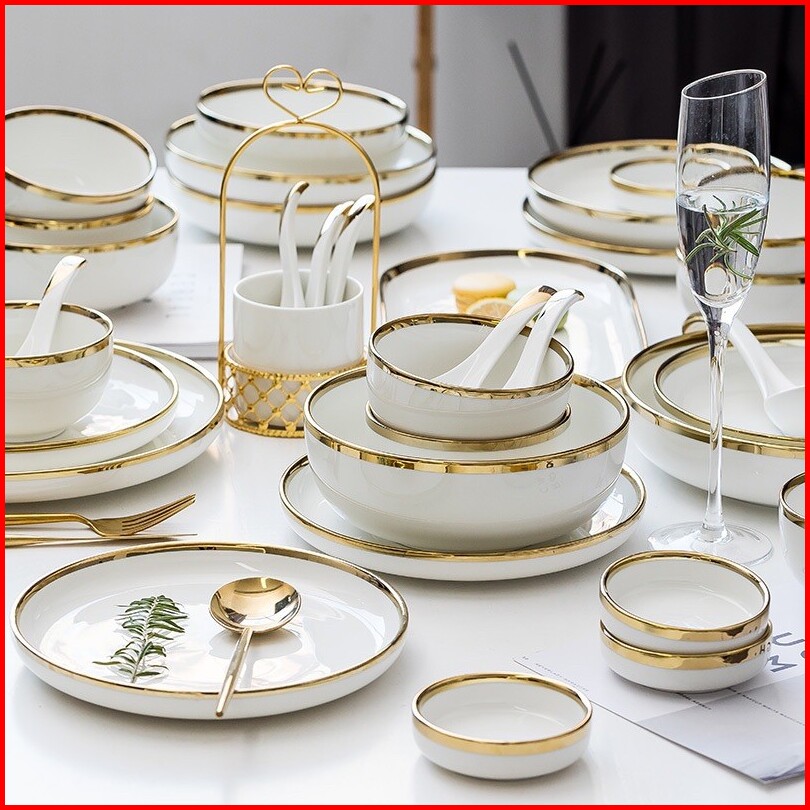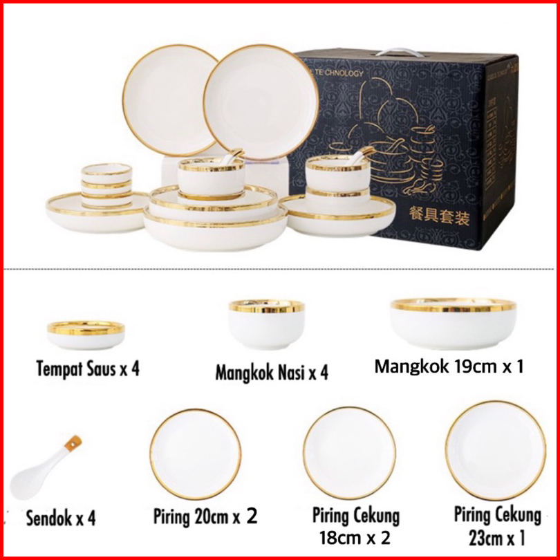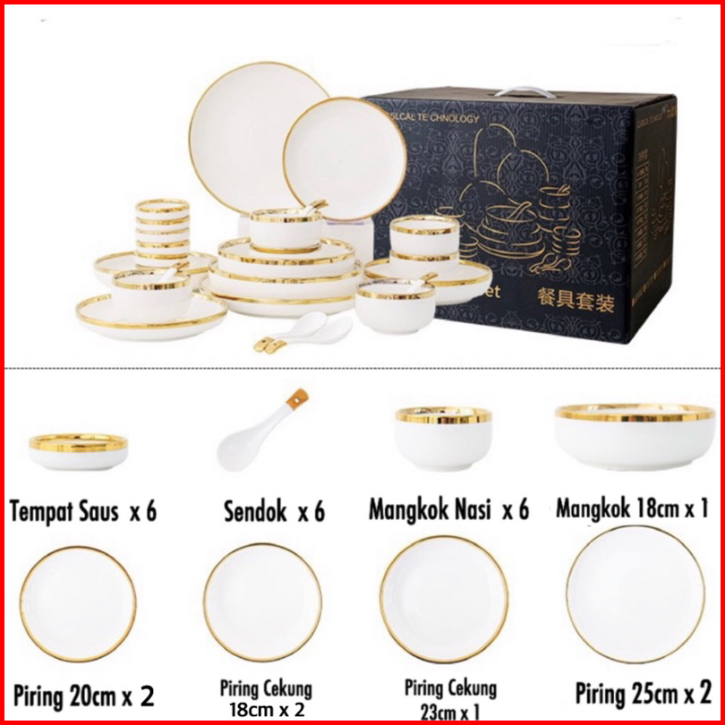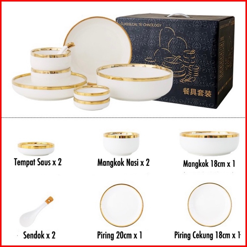 Blanc Rim Plate Set Paket Piring Keramik Putih