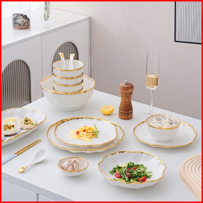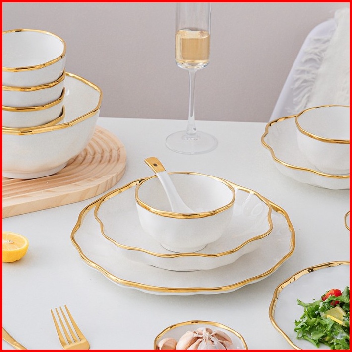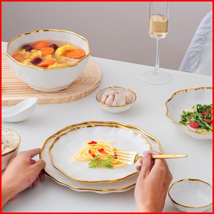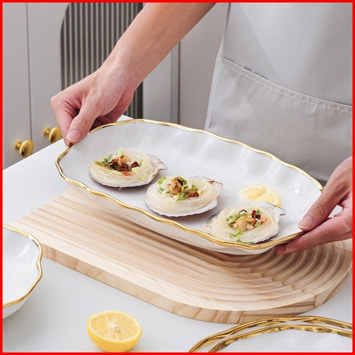 Wavy Plate Piring Mangkok Keramik Putih Gelombang Cantik Sultan