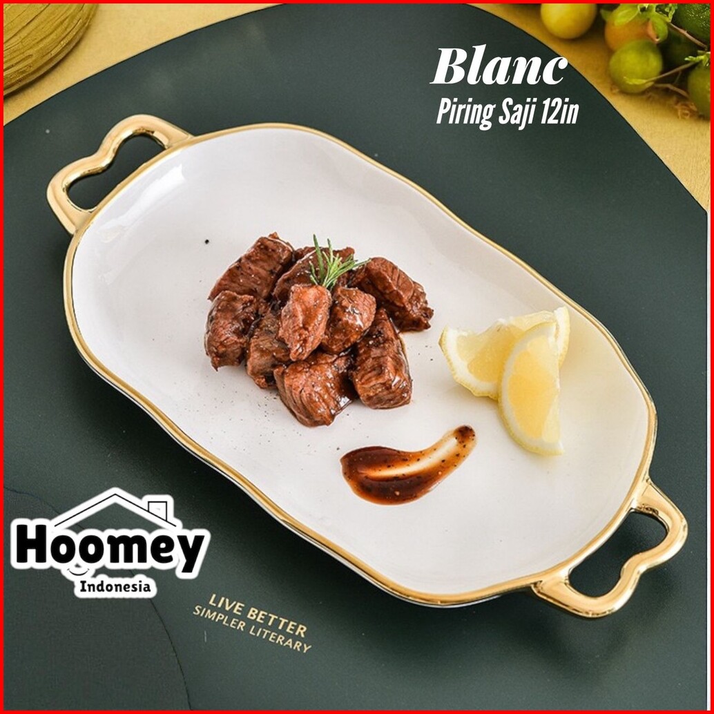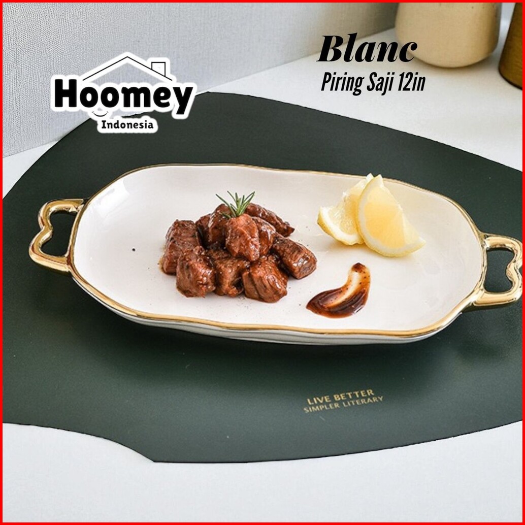 Blanc Piring Saji Keramik 12in 30.5cm Putih Gagang Piring Lauk Piring Steak Piring Kue Piring Aesthetic Hoomey