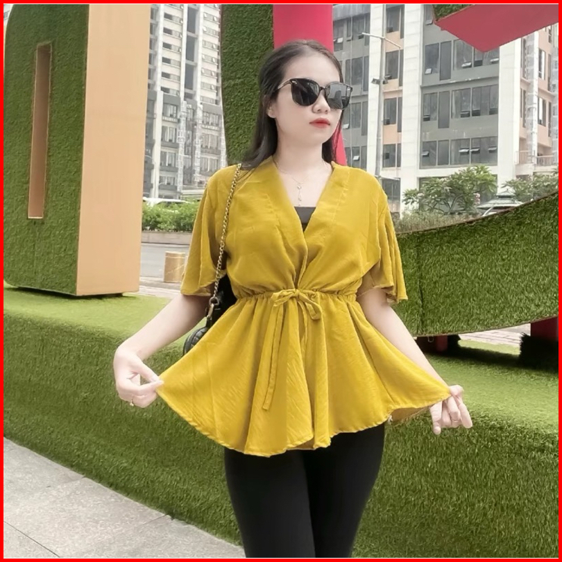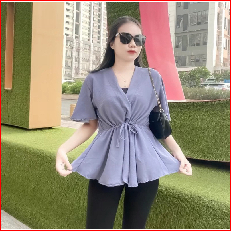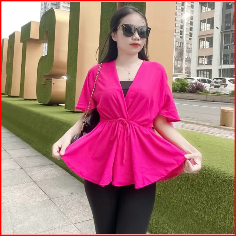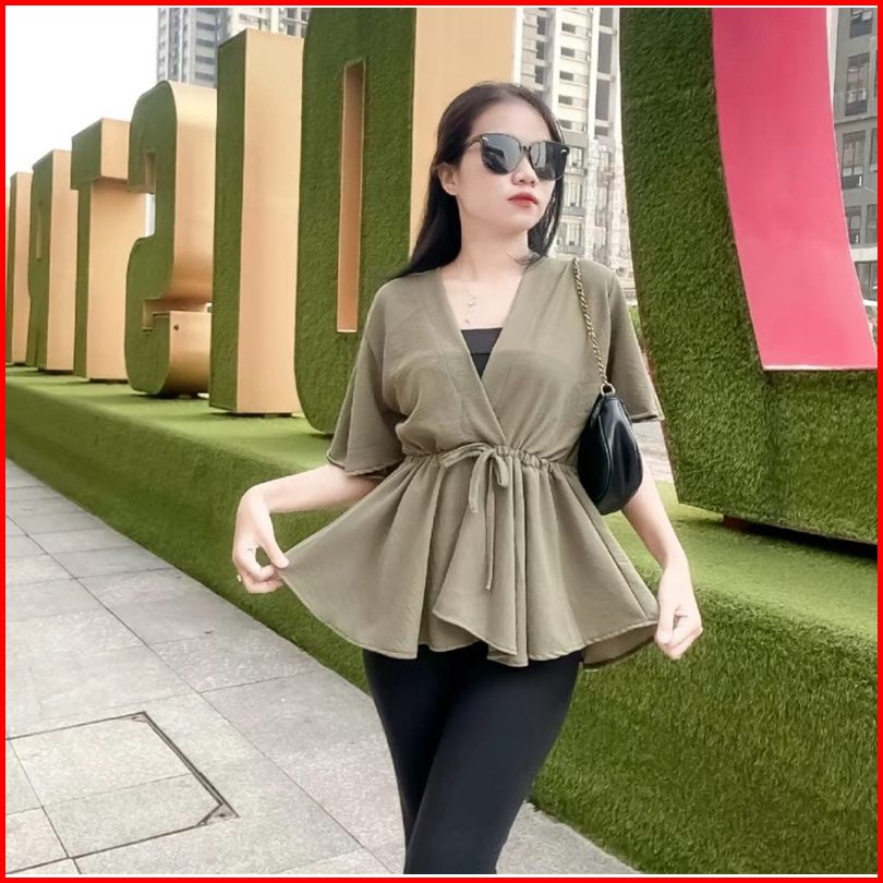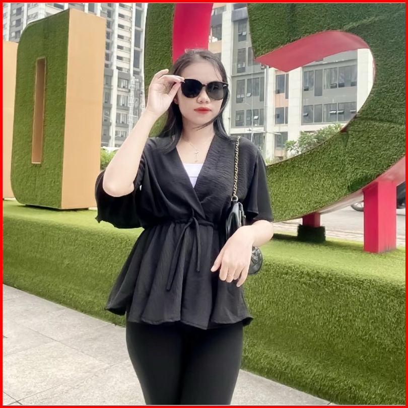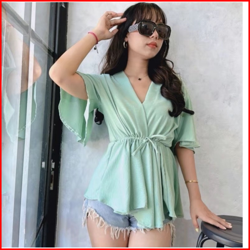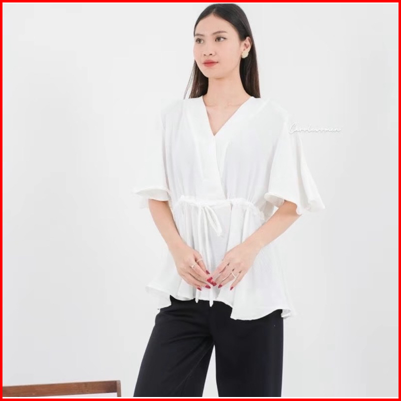 Cessie Top Blouse Atasan Wanita Jumbo Crinkle Premium Baju Santai Nyaman Model Tali Serut Kekinian