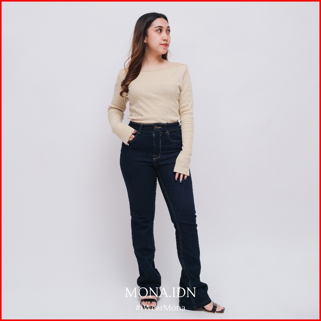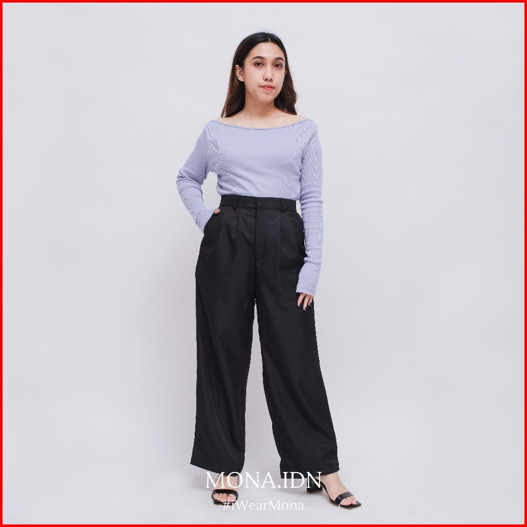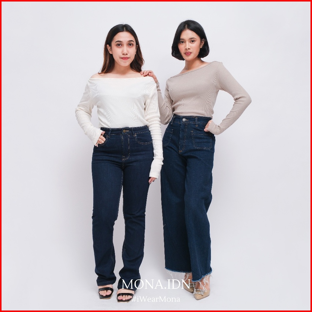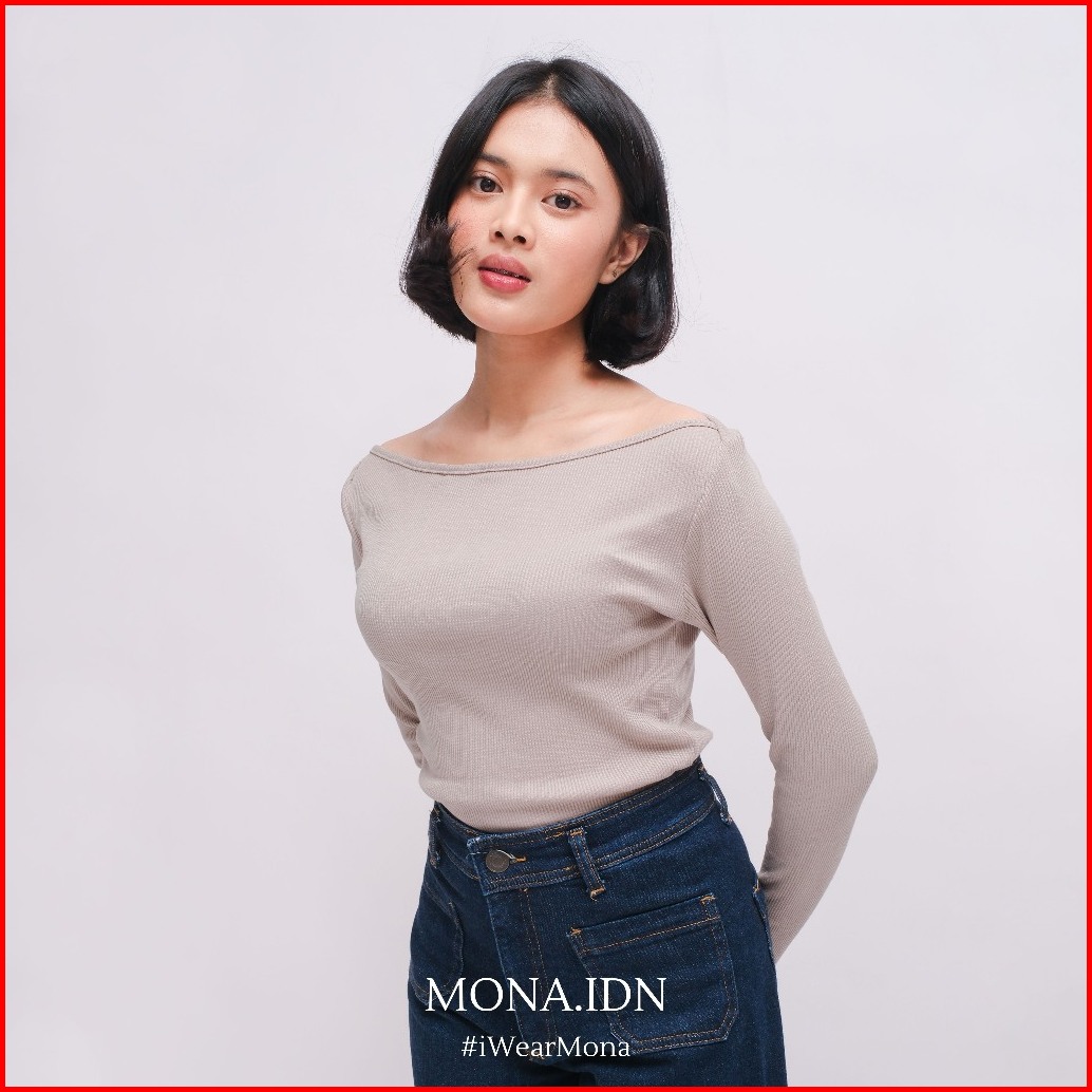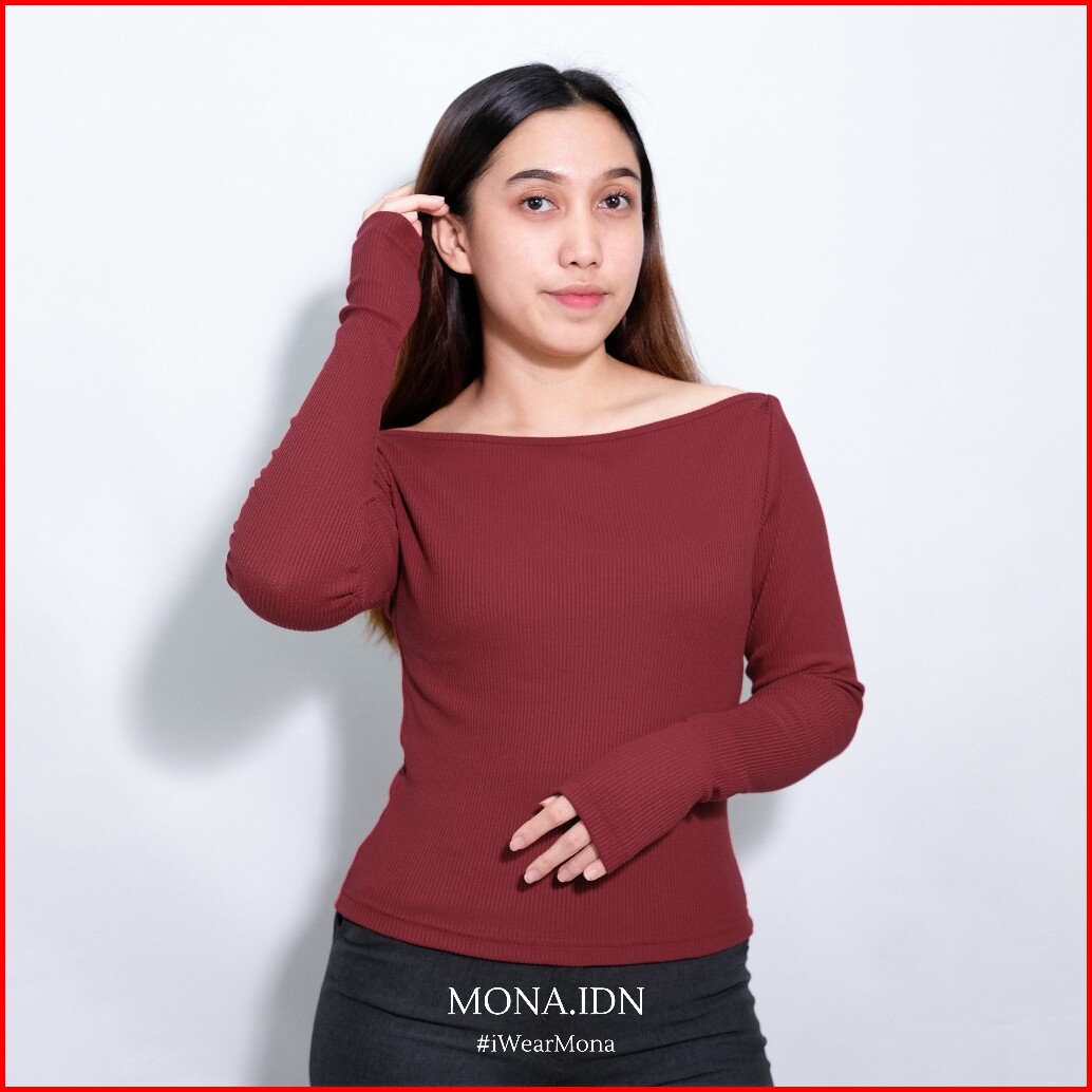 Mona - Lisa Atasan Knit Wanita Lengan Panjang Basic Korean Top Baju Knit Long Sleeve Premium Knit