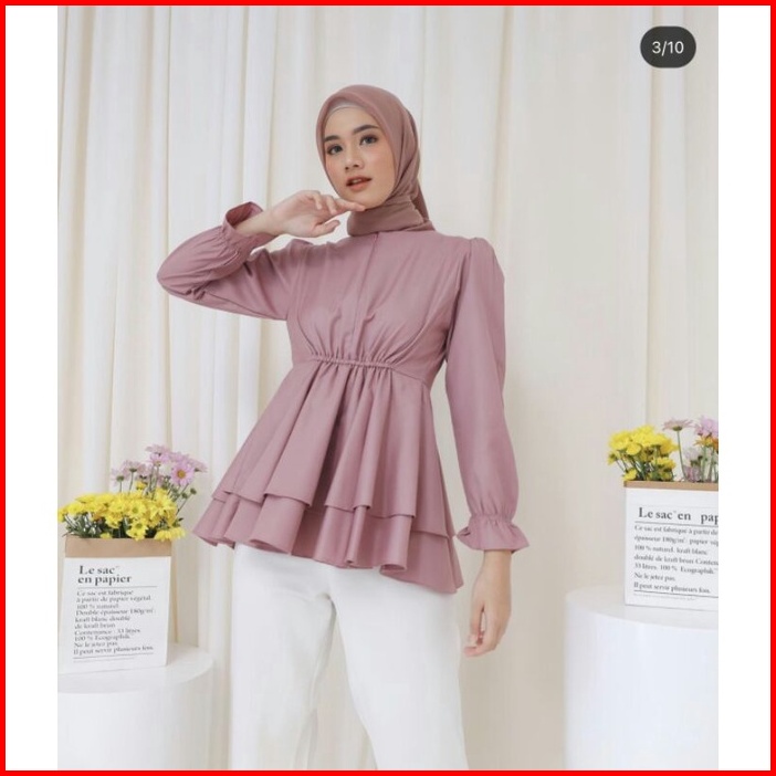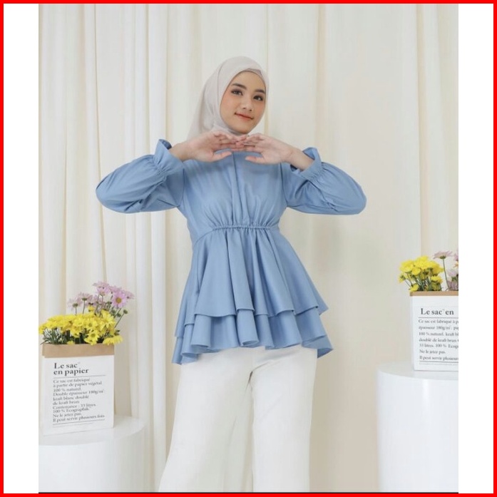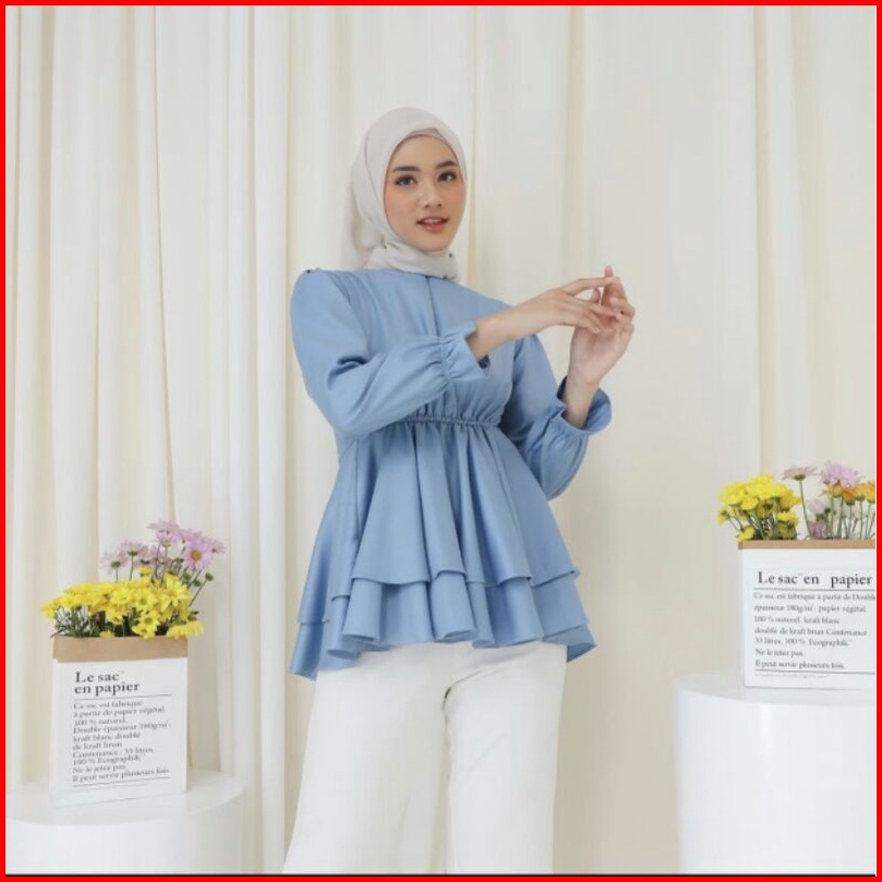 Ayunindia Blouse - Atasan Wanita Lengan Panjang Untuk Kerja Kuliah Interview Ootd Kekinian Top Wanita Terbaru Peplum Bas
