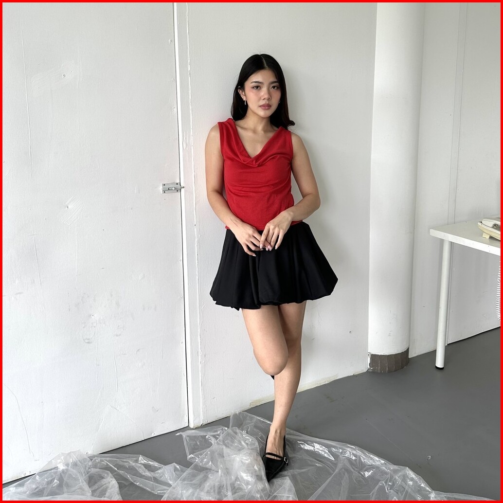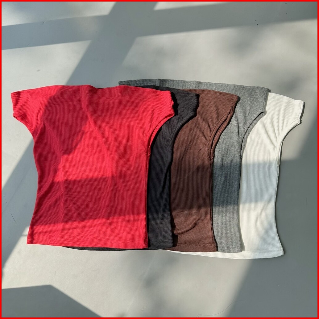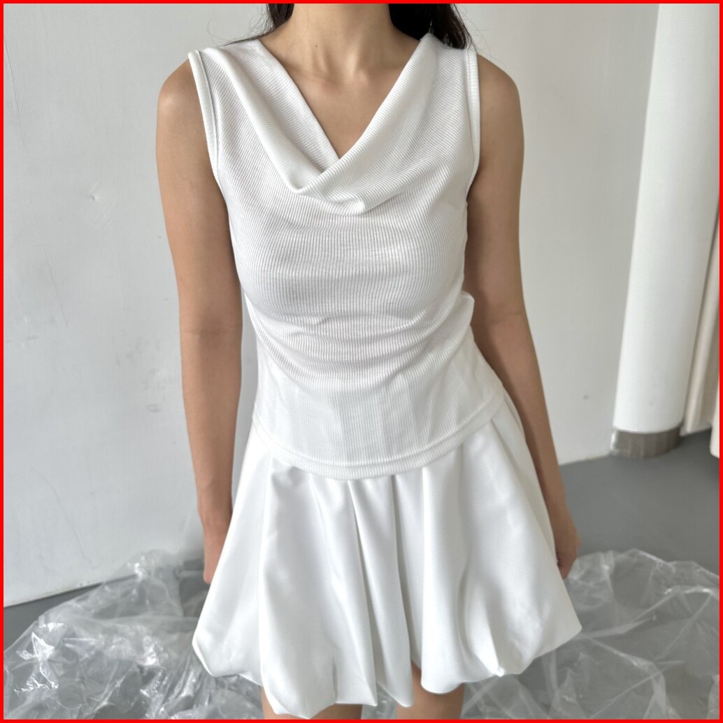 Dune Top - Tanktop Ribbed Knit Drape Top Cowl Neck Off Shoulder Kaos Racer Tee Basic Baju Crop Top Atasan Summer Wanita
