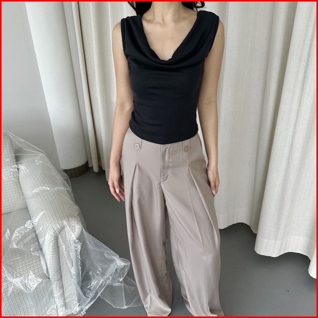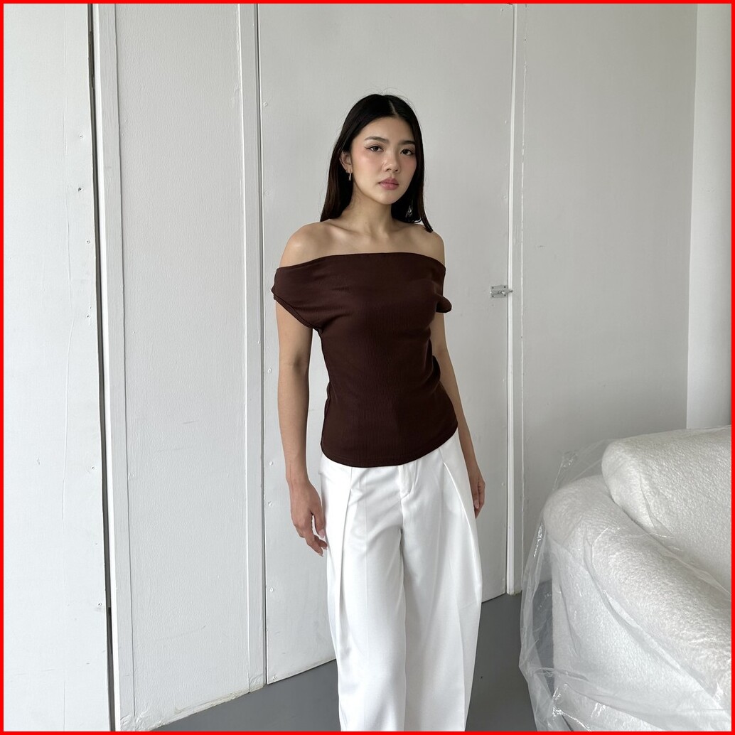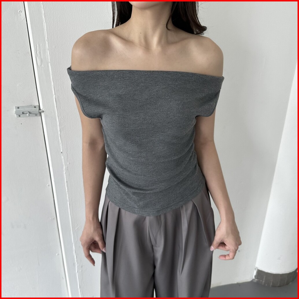 Dune Top - Tanktop Ribbed Knit Drape Top Cowl Neck Off Shoulder Kaos Racer Tee Basic Baju Crop Top Atasan Summer Wanita