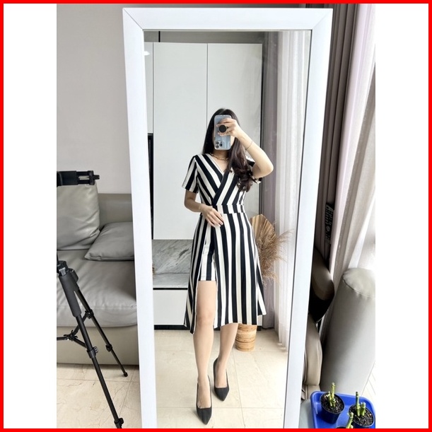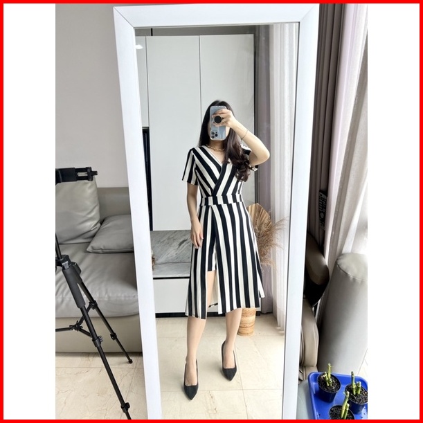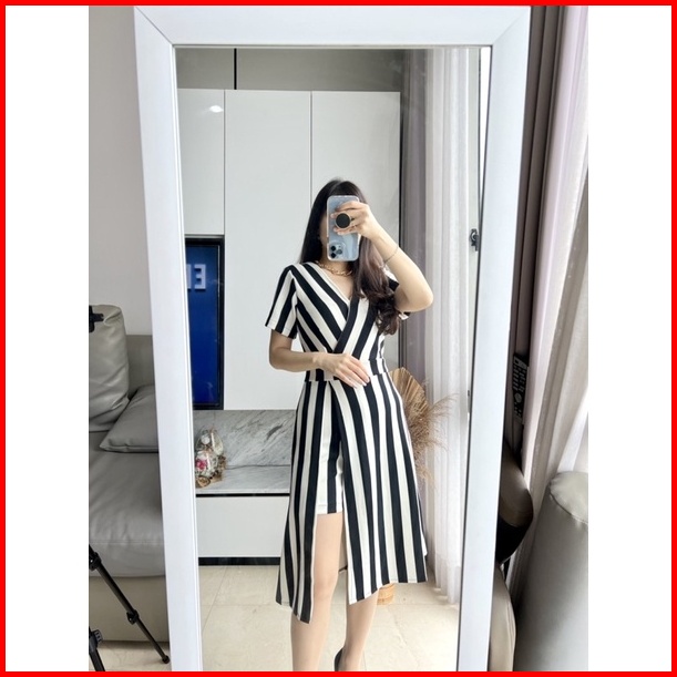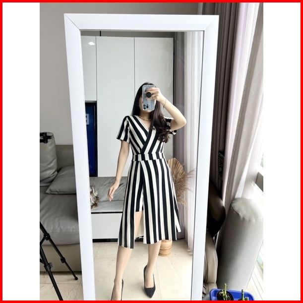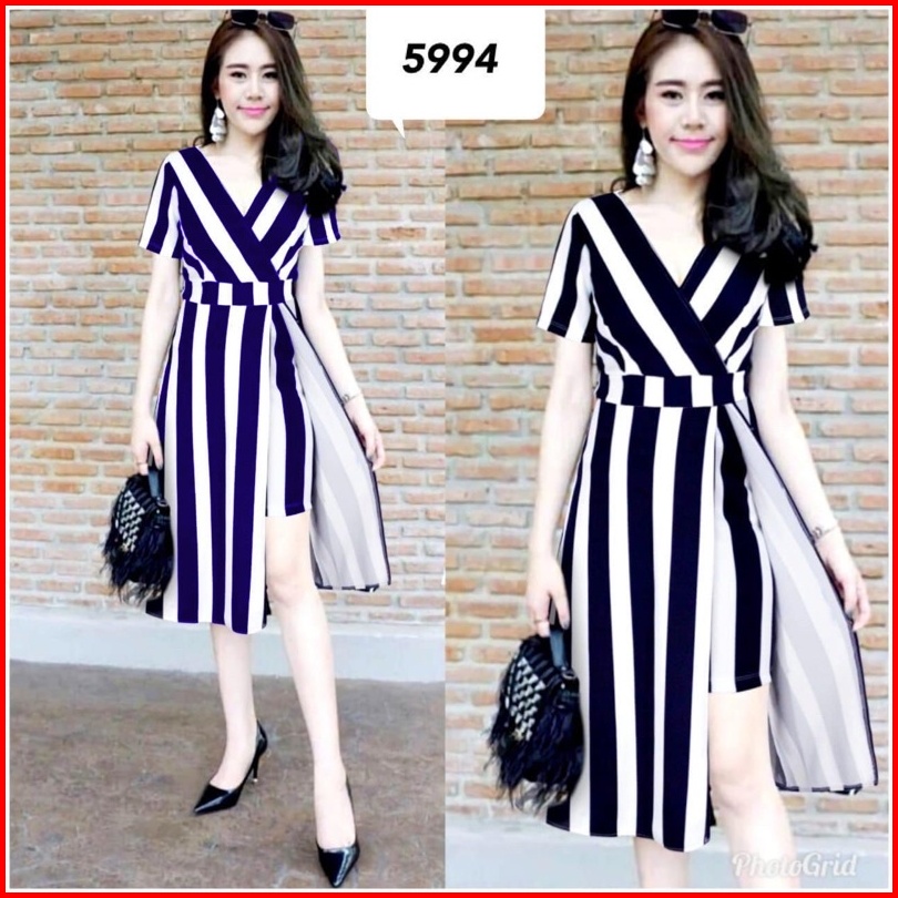 Jumpsuit Rok Wanita Scuba Garis-garis 5994 Import