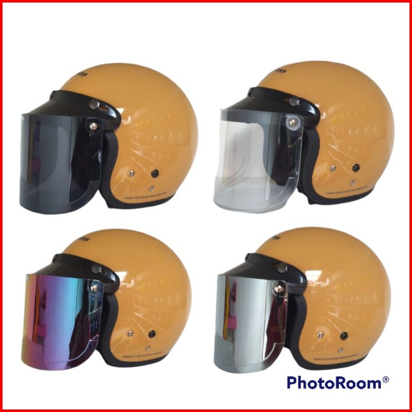Hitam (smoke), Putih Bening (clear), Silver (crome), Pelangi (rainbow), Kaca Cembung Bogo