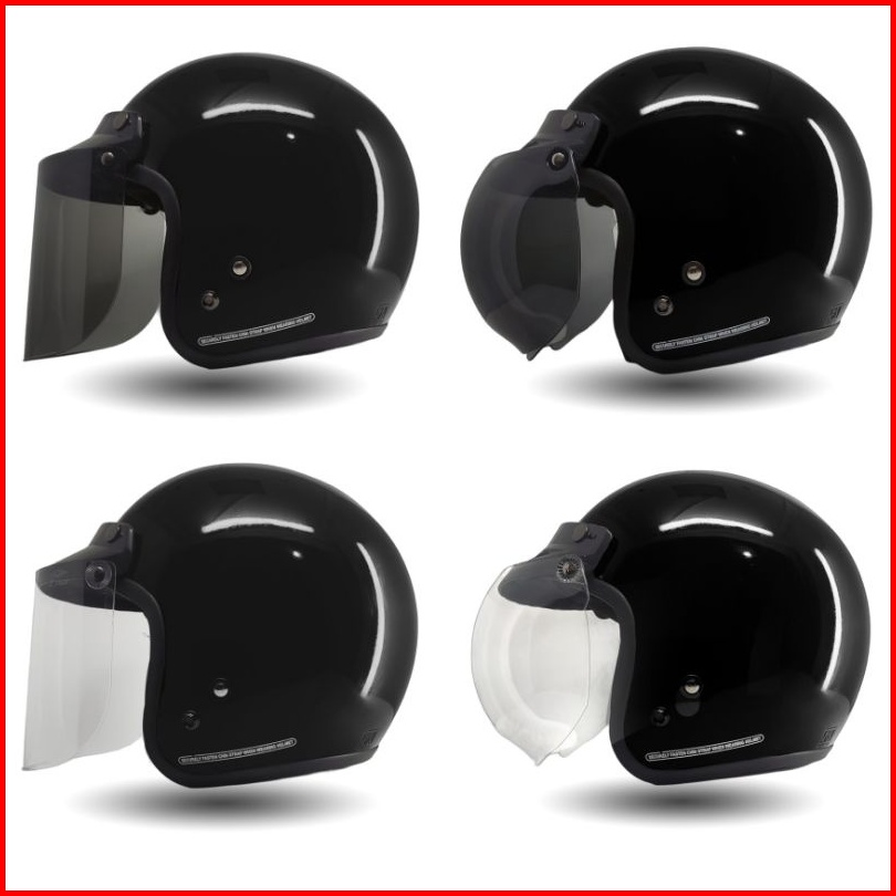 Helm Bogo Retro Solid Black Glossy