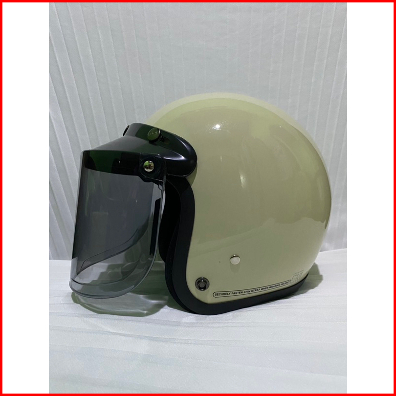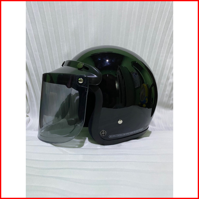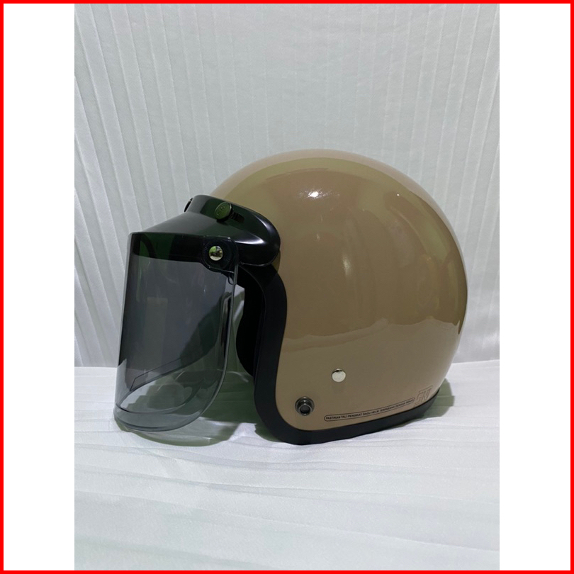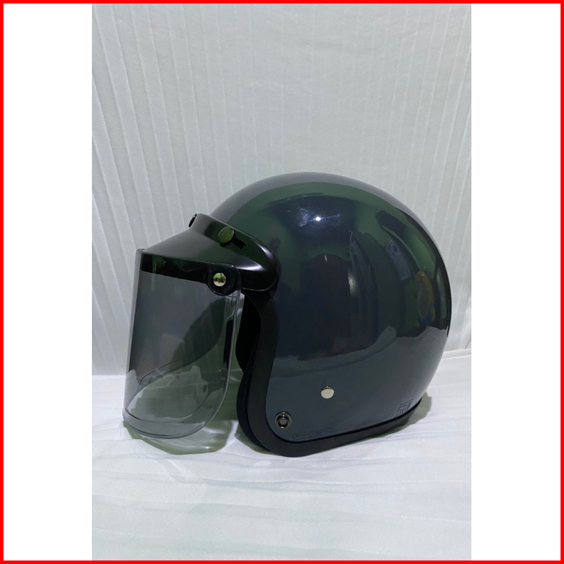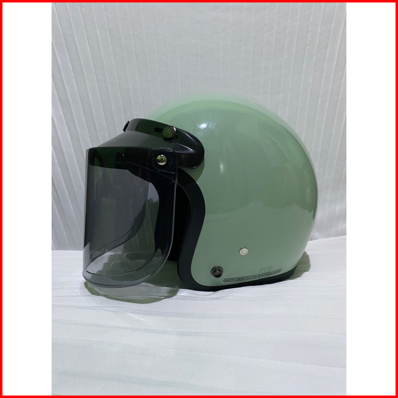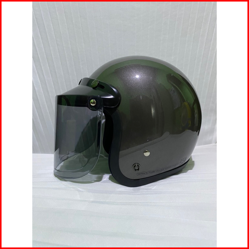 Helm Dewasa Bogo Retro Kaca Datar Flet Sni