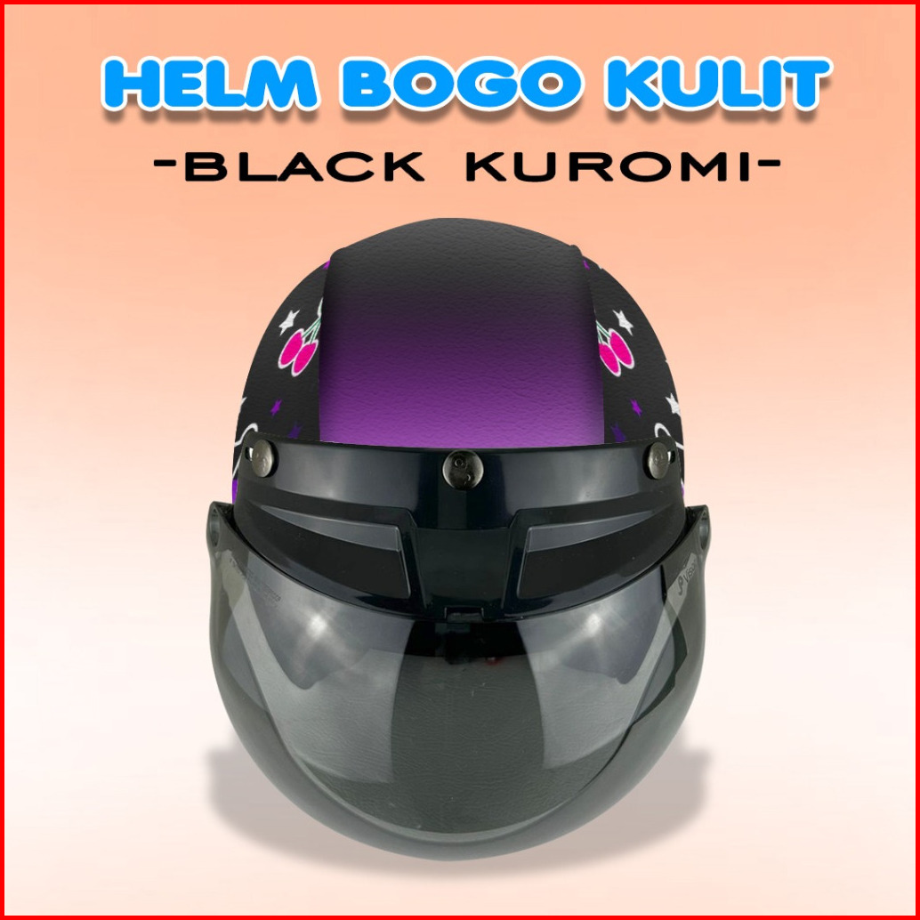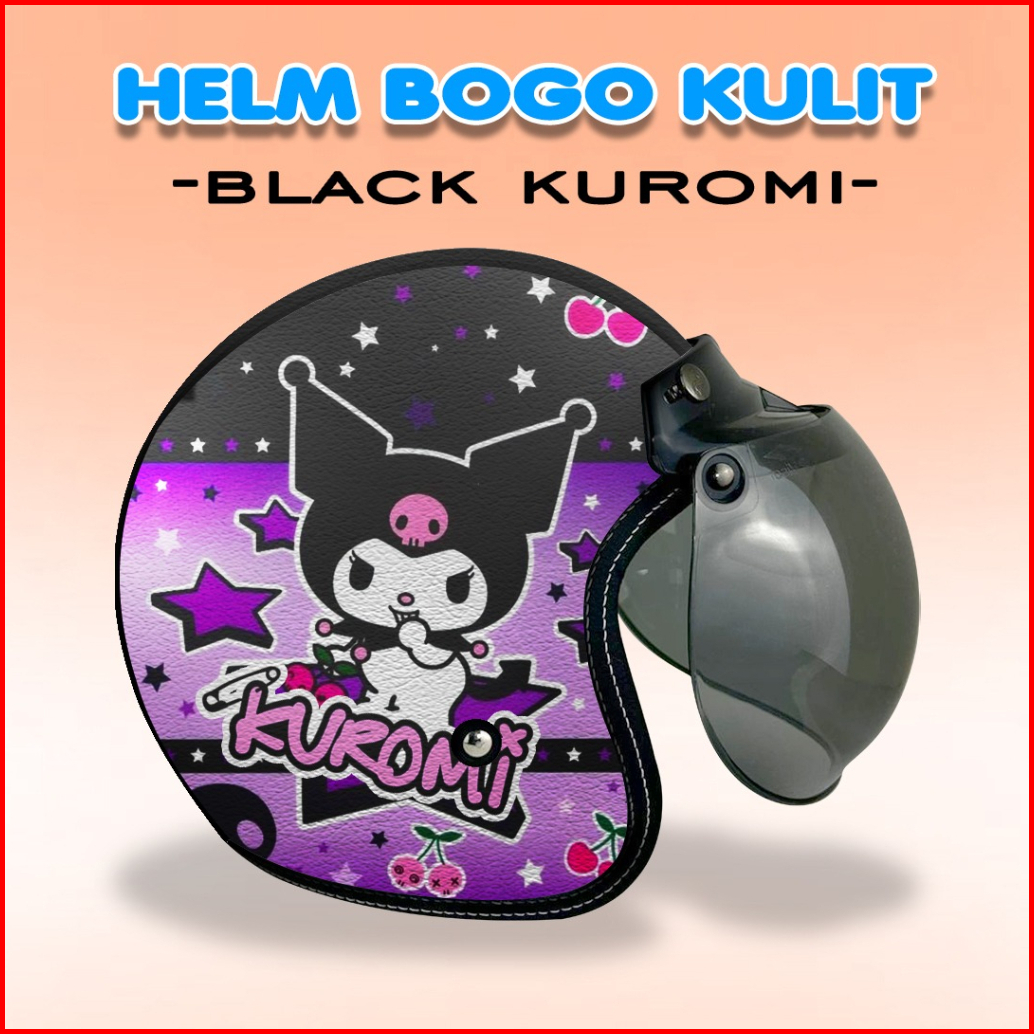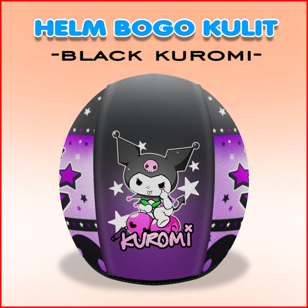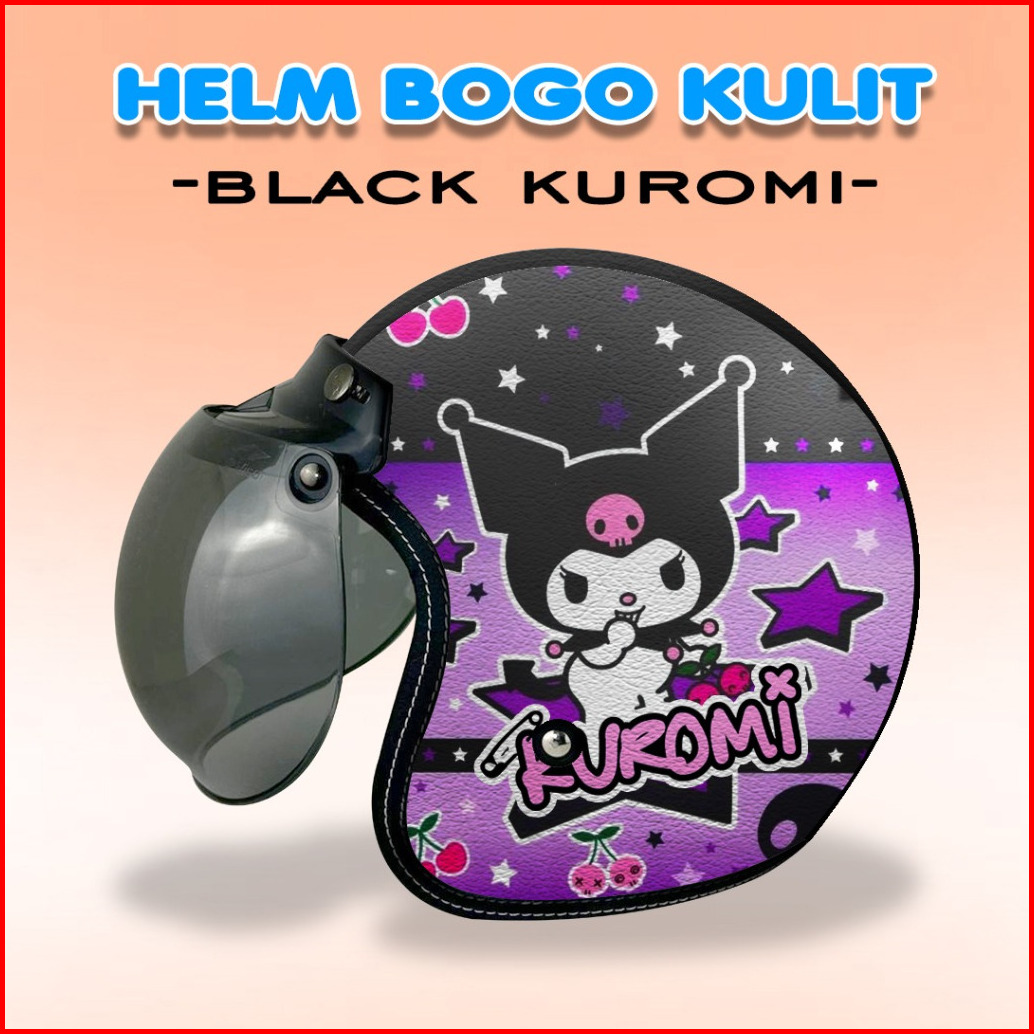 Helm Bogo Kulit Sni Helm Kuromi Ukuran Dewasa Dan Anak-anak Kaca Cembung Flat Free Tambah Nama