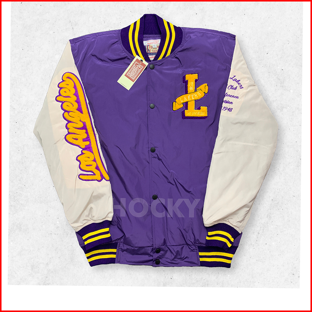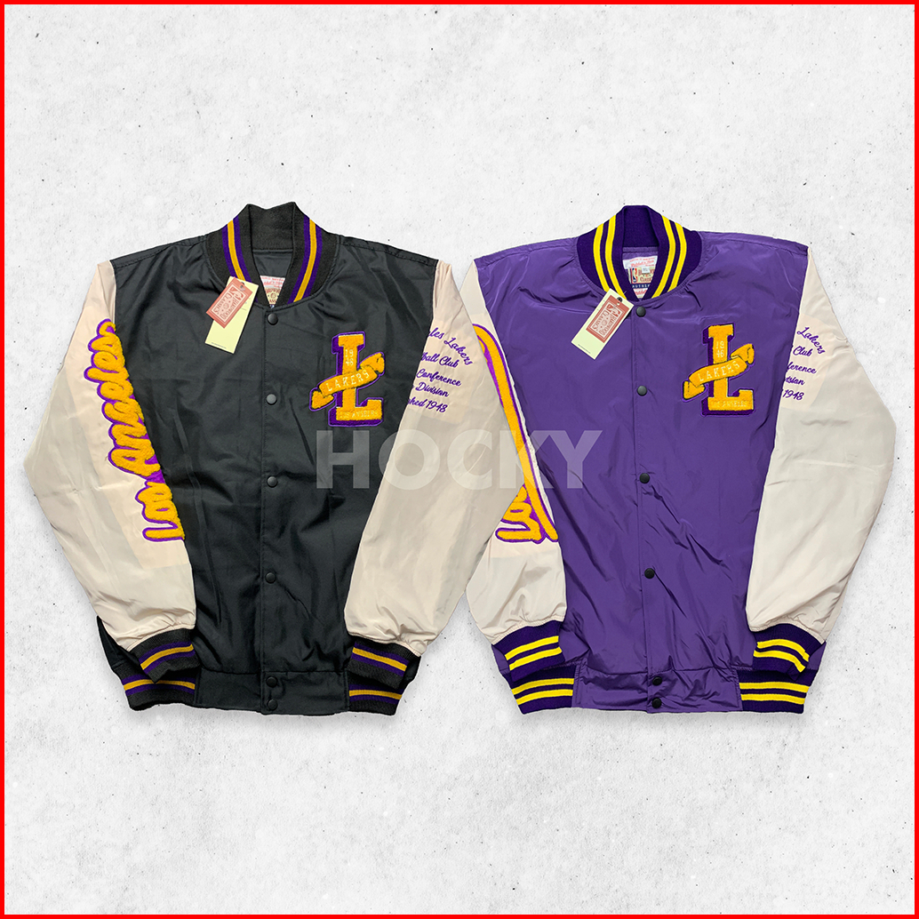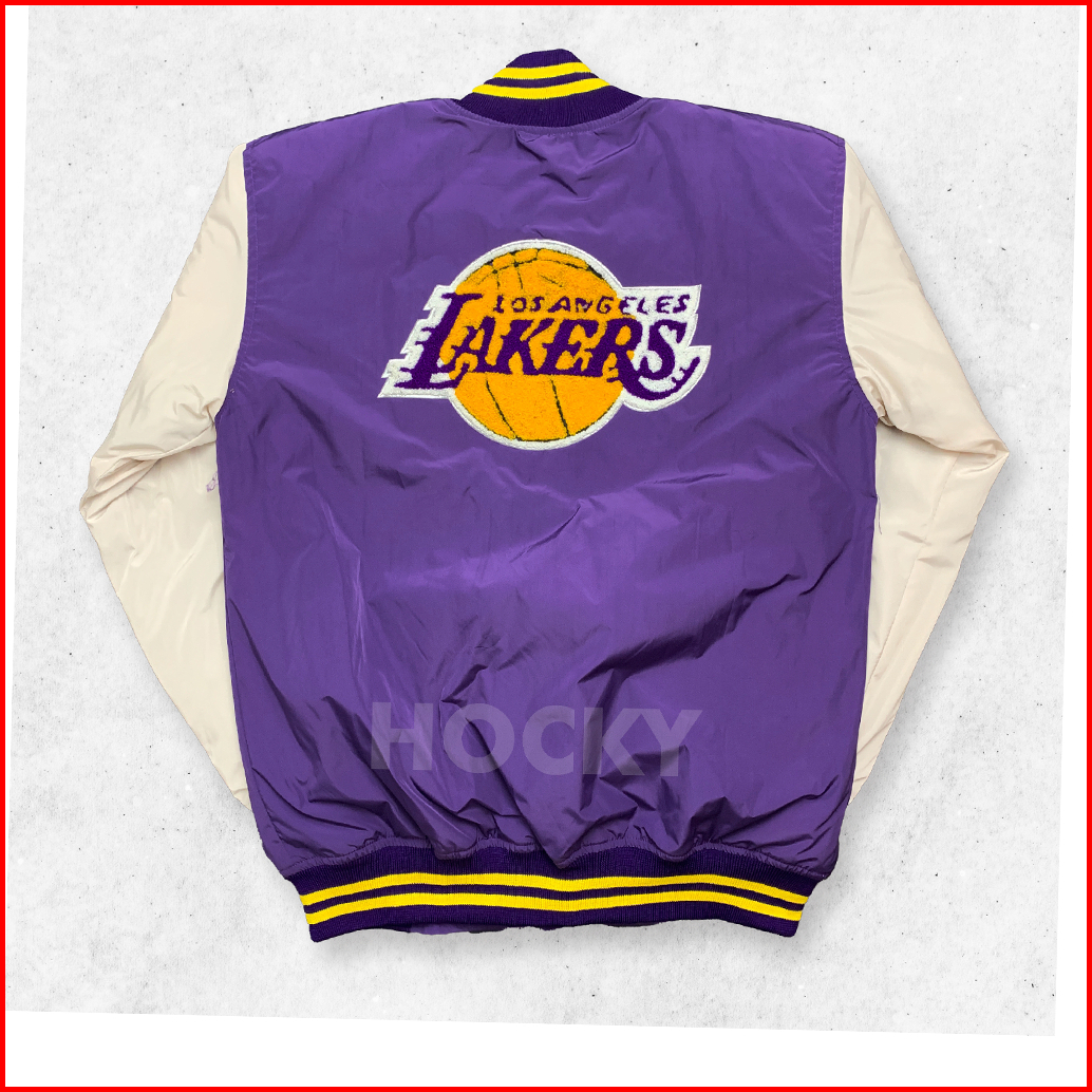 Hocky Varsity Los Angeles Laker S Purple Cream Bomber Jacket Casual Vintage Full Embroidery