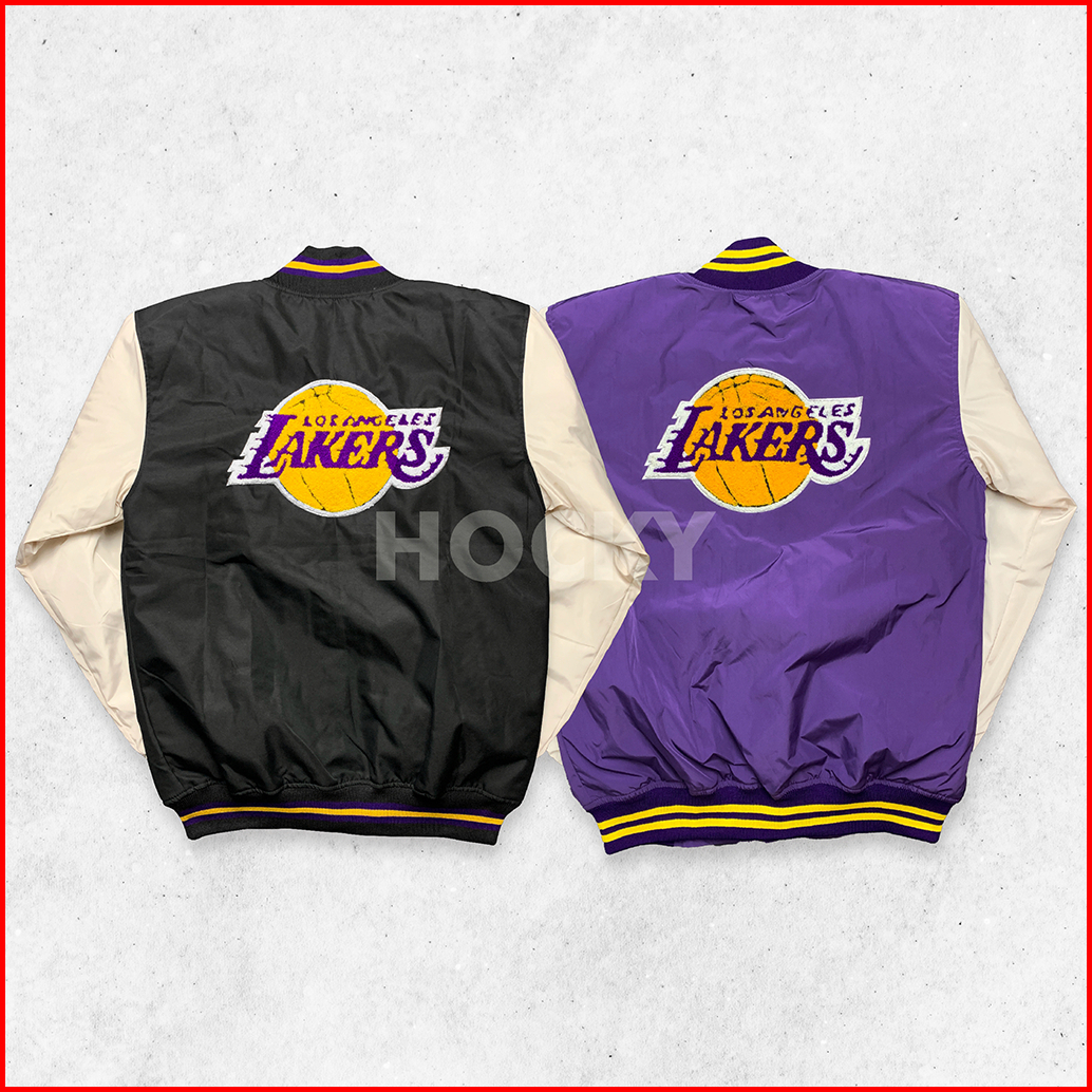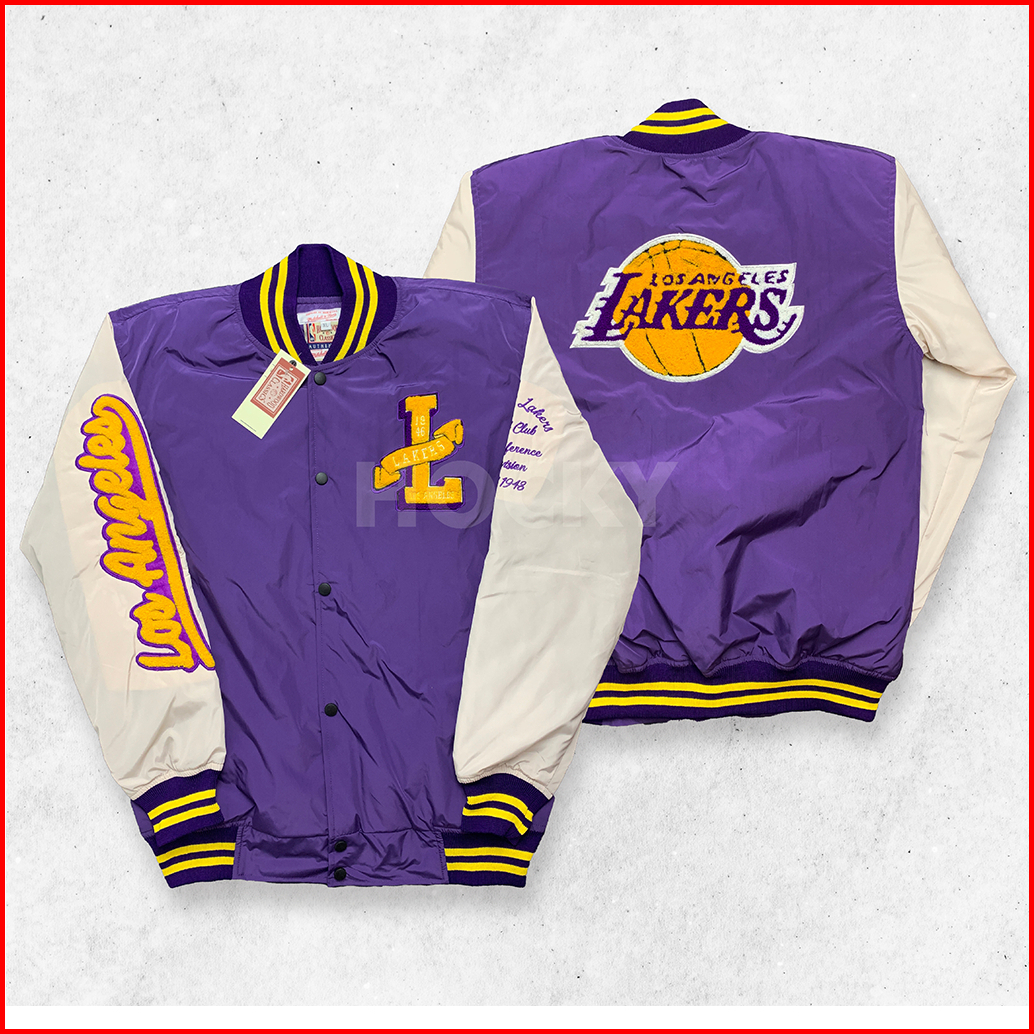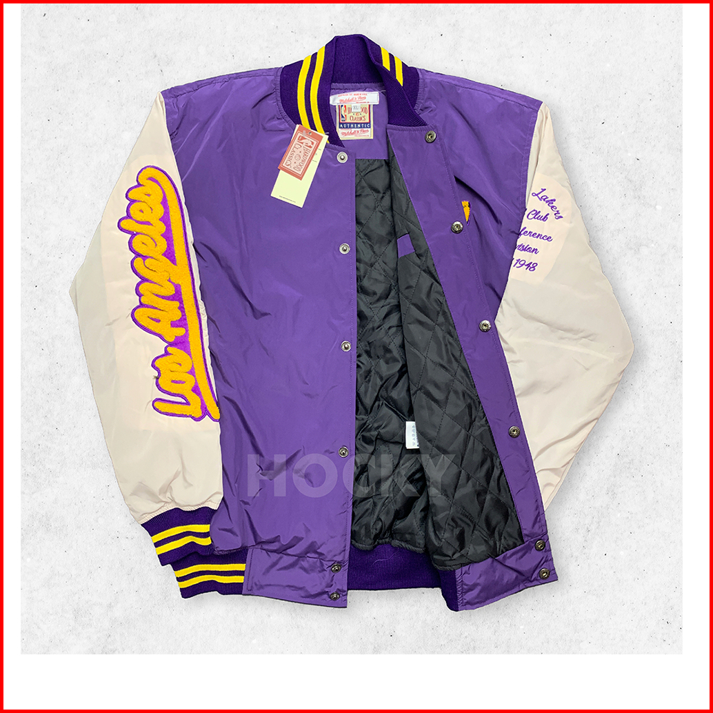 Hocky Varsity Los Angeles Laker S Purple Cream Bomber Jacket Casual Vintage Full Embroidery