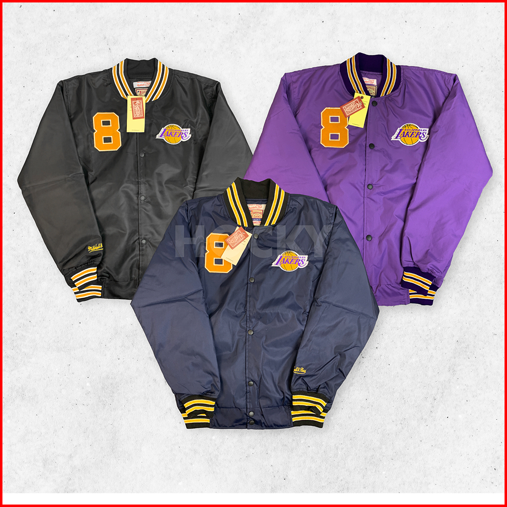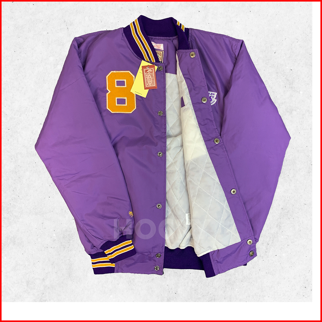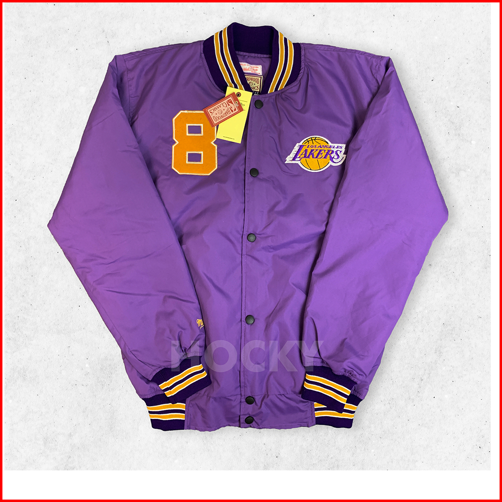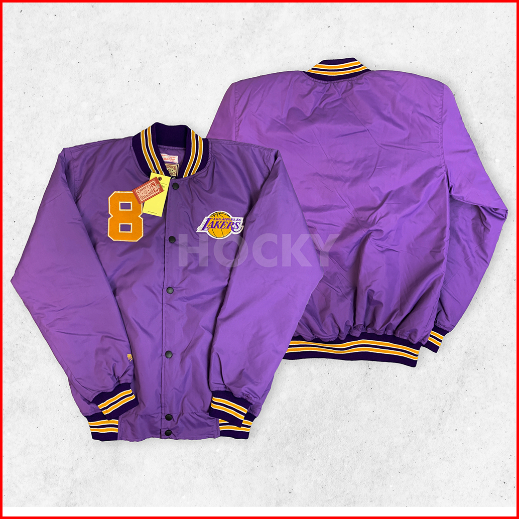 Hocky Jaket Varsity Baseball Pria Ungu Laker S 8 Full Bordir Casual Vintage Basketball