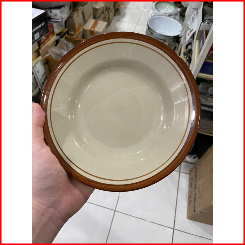 Isi 6 Biji Piring Makan Keramik Coklat Lis Ukuran 8 20 Cm Bubble Wrap