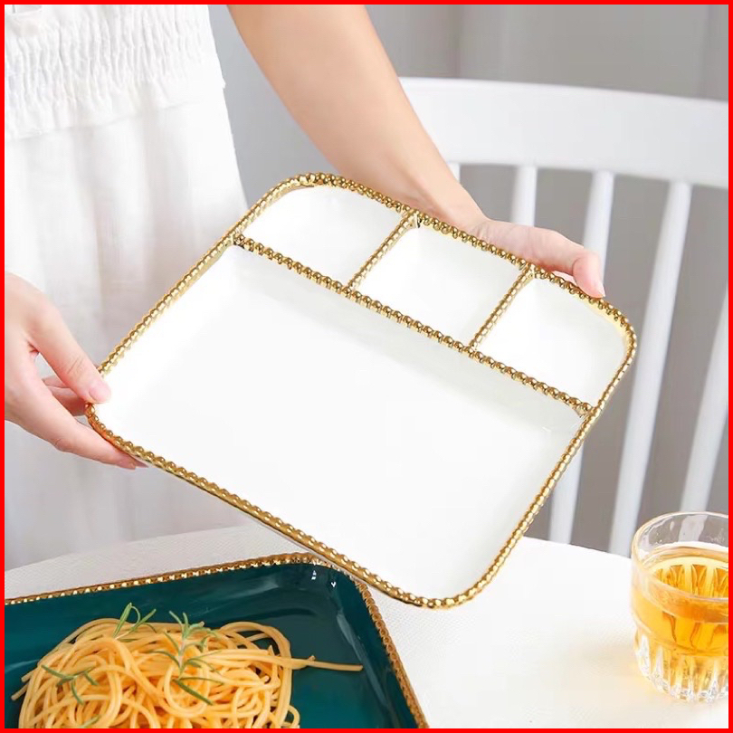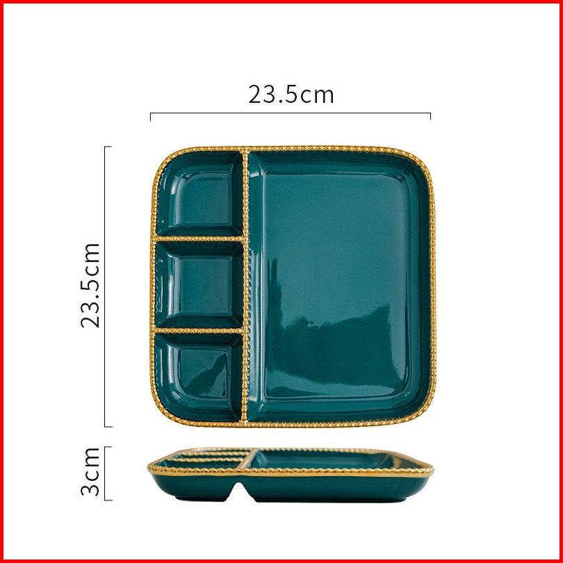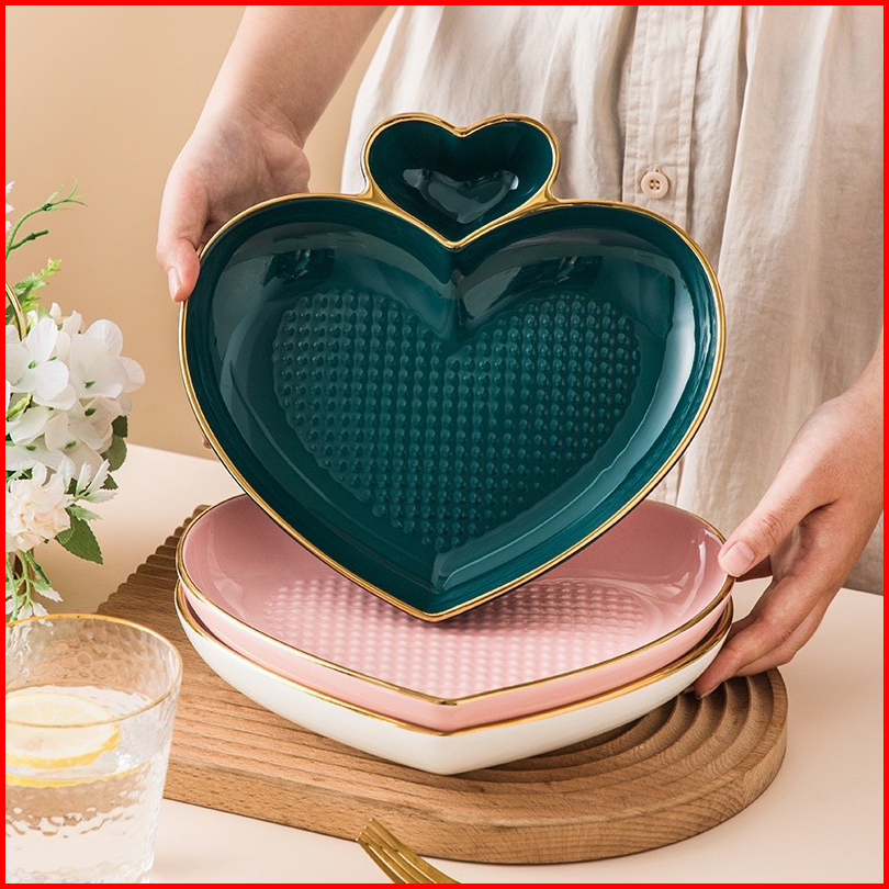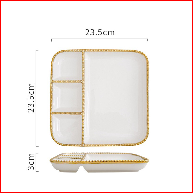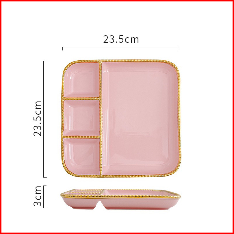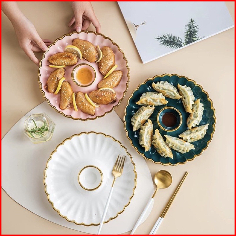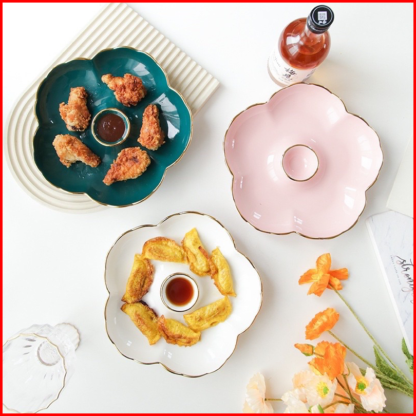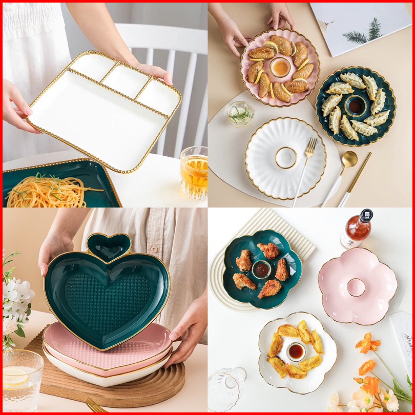 Piring Sekat List Keramik Saus Steak Sushi Dumpling Hati Bunga Sekat Tiga
