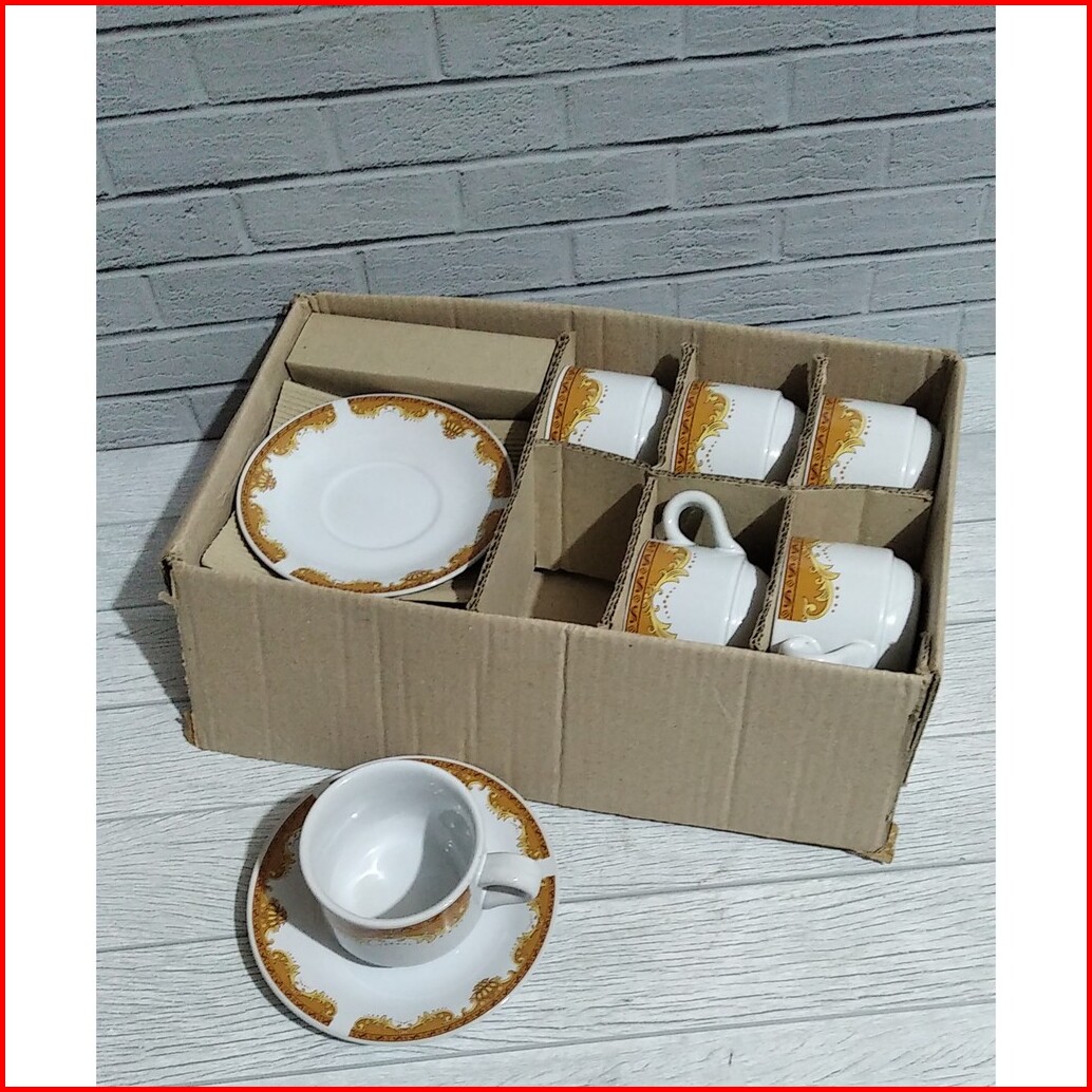 Gelas Kopi Batik Piring Tatakan Beling 6 Set Gelas Kopi Beling Keramik