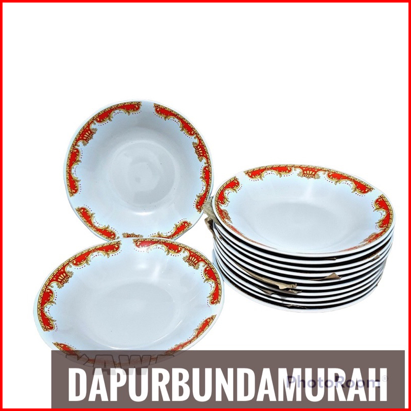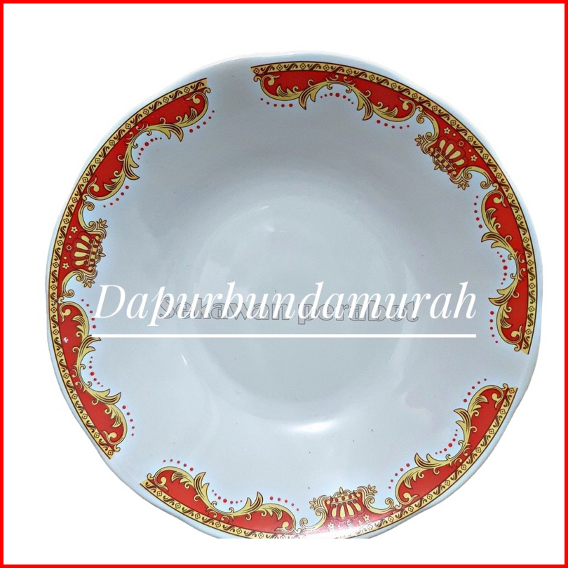 1 Lusin Lilia 8 Inch Piring Makan Mahkota Merah Piring Keramik Batik