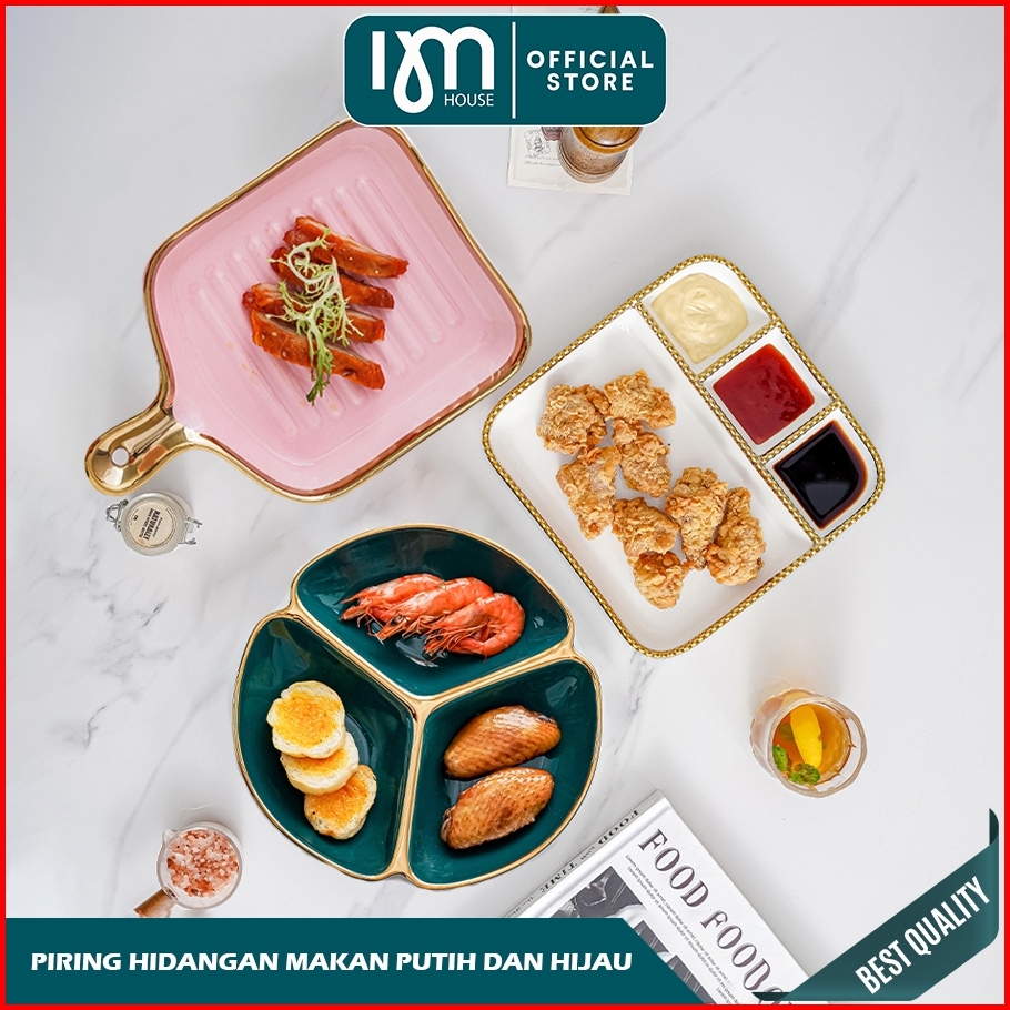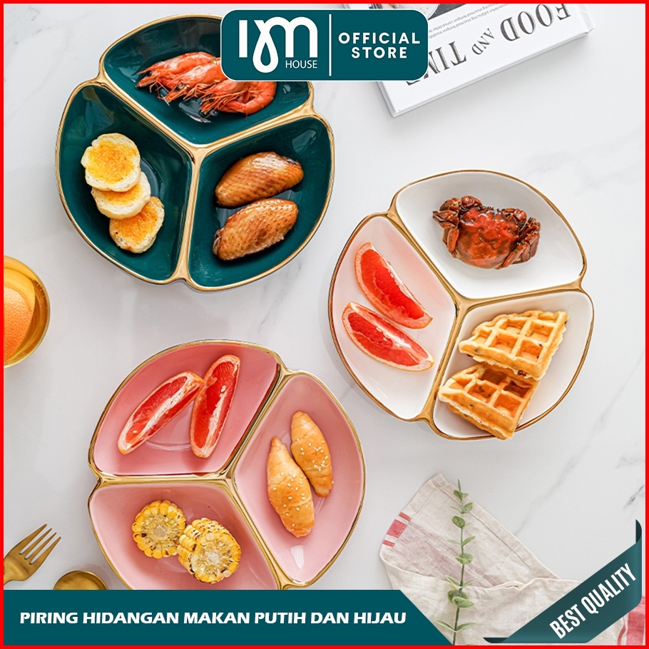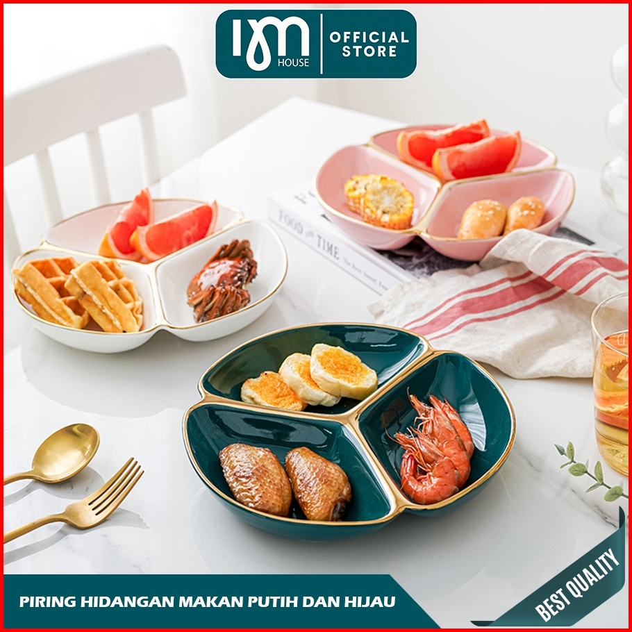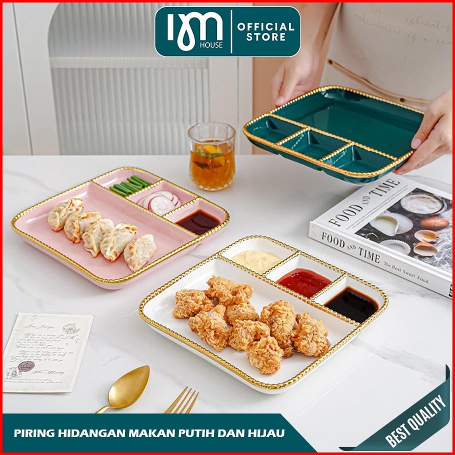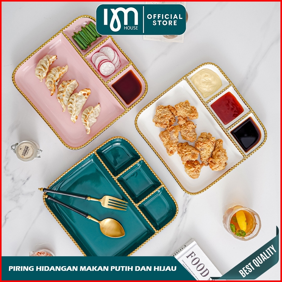 Inmindhouse - Piring Saji Keramik Piring Keramik 3 Bagian Piring Keramik Kotak Sekat 4 Elegant