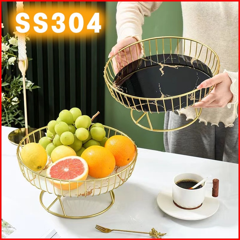 Wadah Buah Keranjang Buah Ss304 Piring Keramik Elegan Marble Hitam Marble