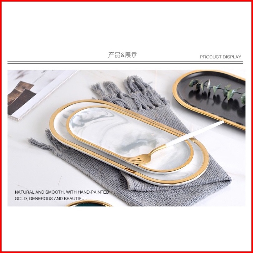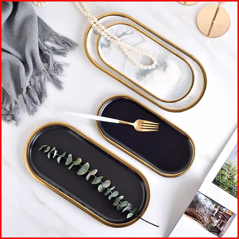 Marble Plate Oval Tray Alas Pajangan Tatakan Nampan Marble Keramik Estetik Oval Murah
