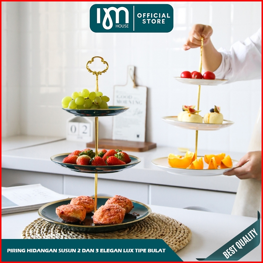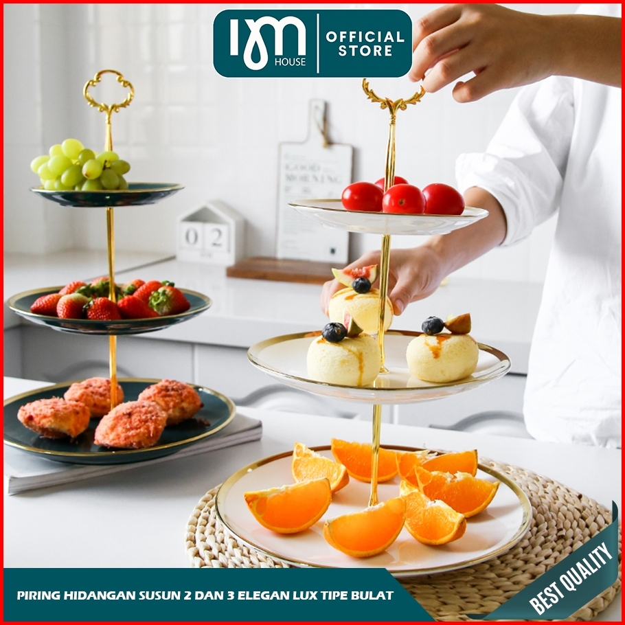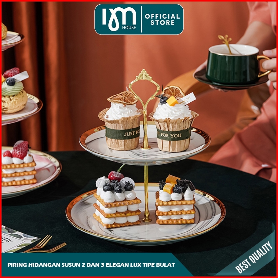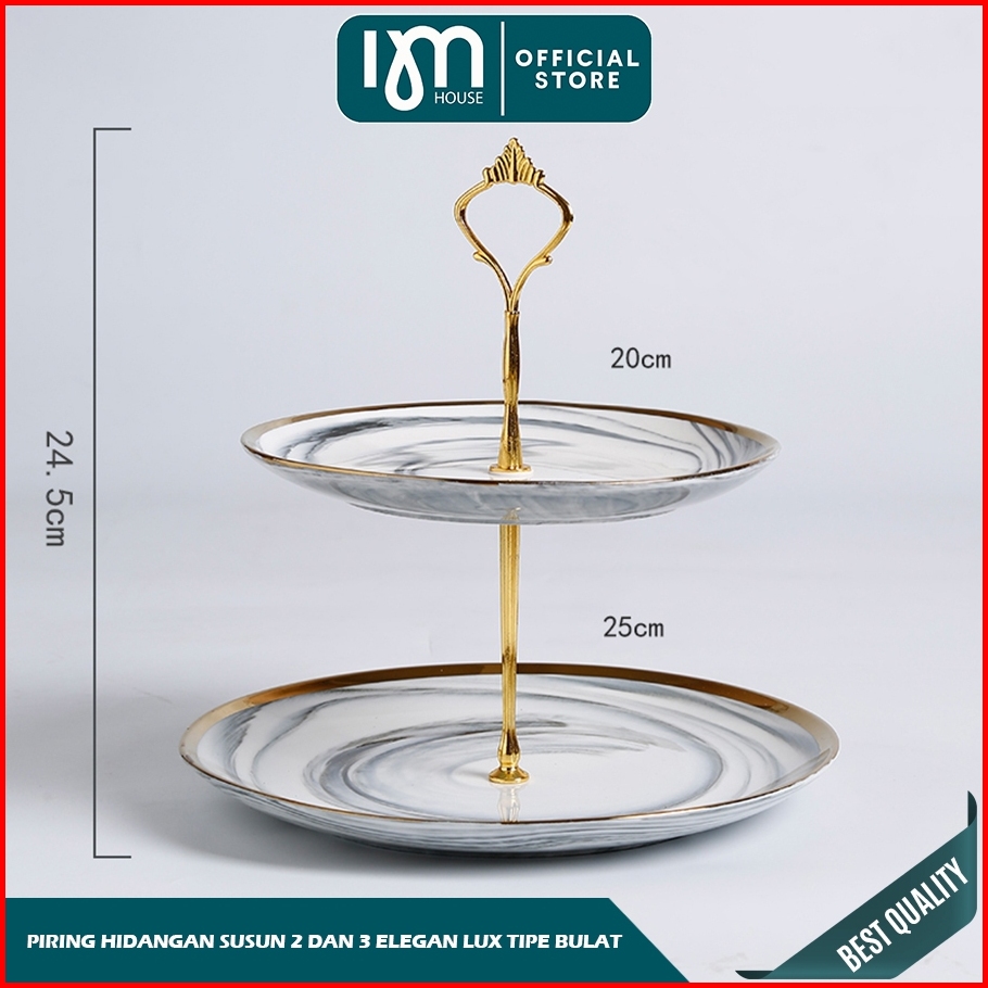 Inmindhouse Piring Kue Tingkat Keramik List Double Layer Dessert Cake Piring Kue Tingkat Mewah
