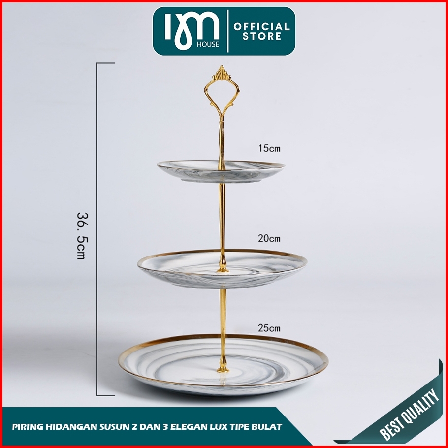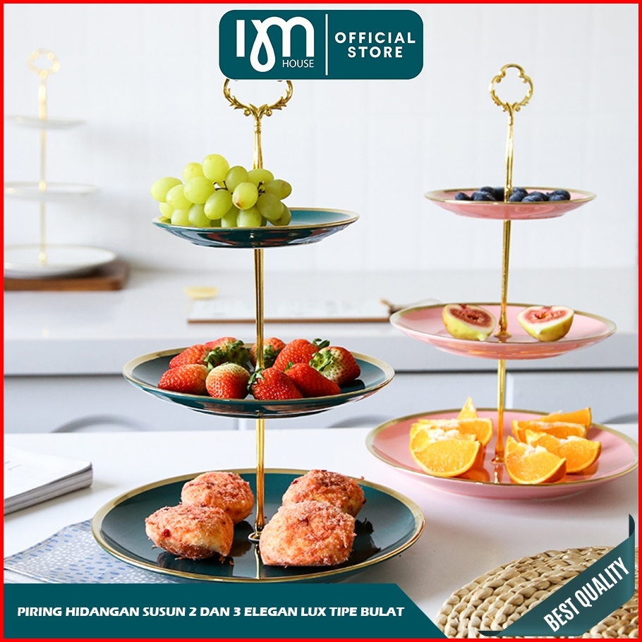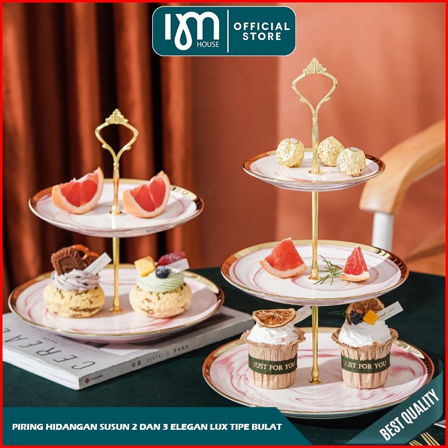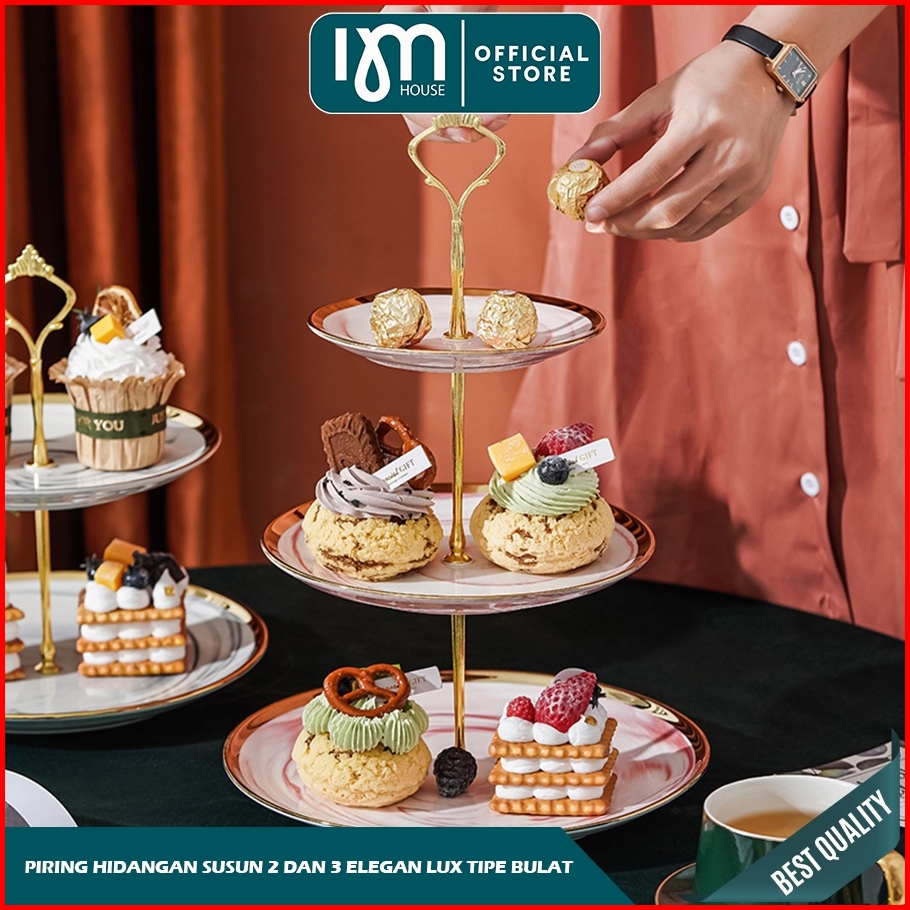 Inmindhouse Piring Kue Tingkat Keramik List Double Layer Dessert Cake Piring Kue Tingkat Mewah