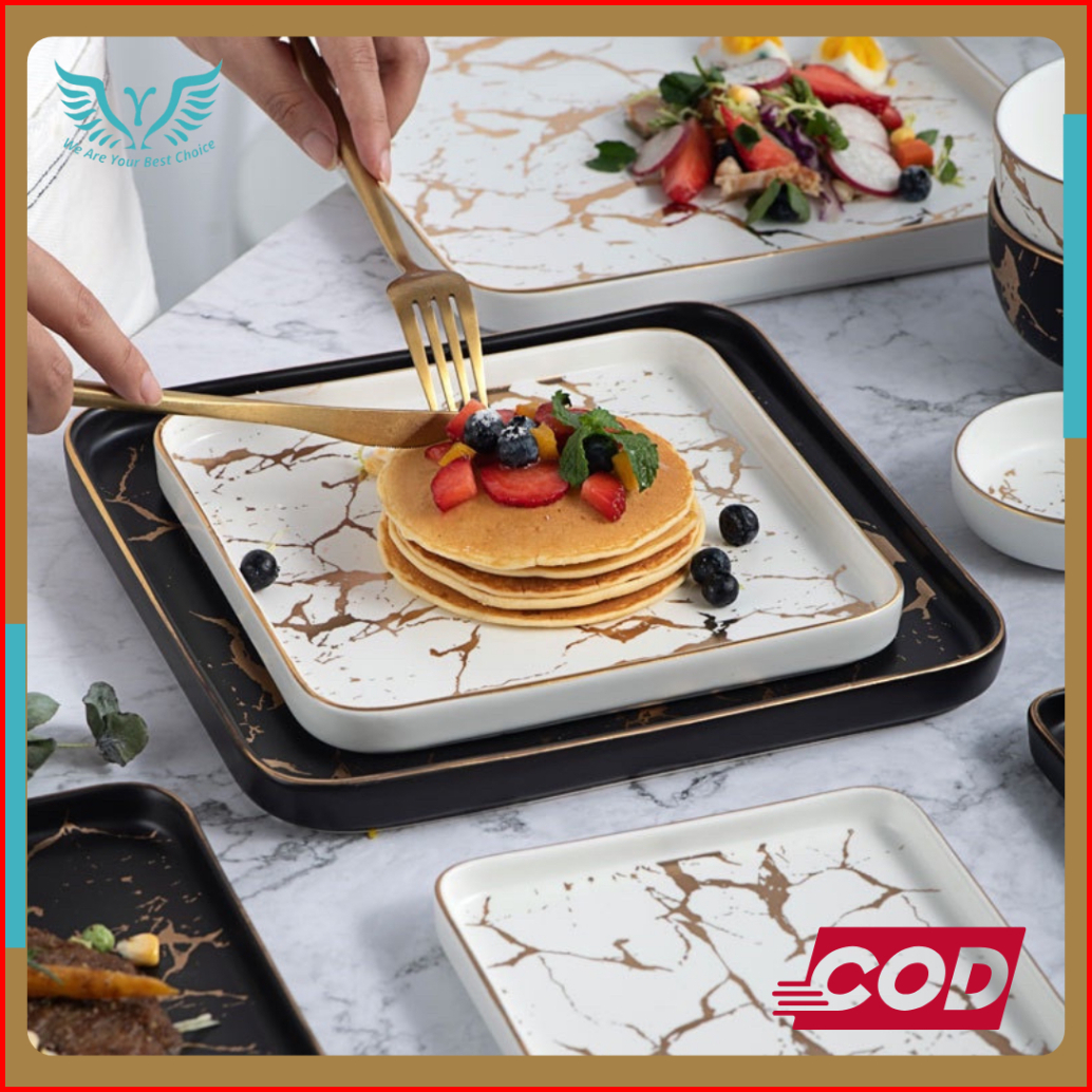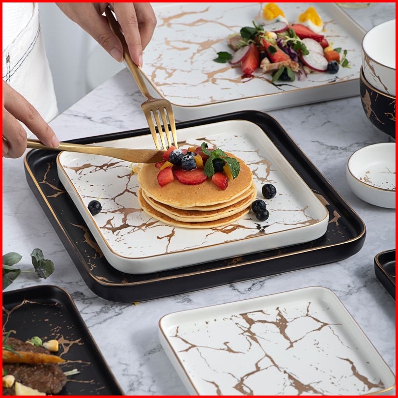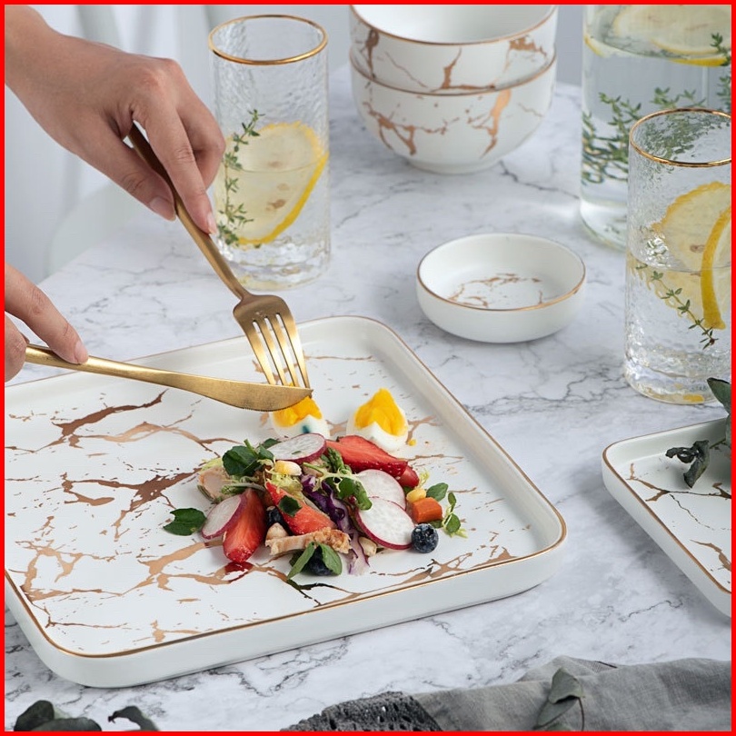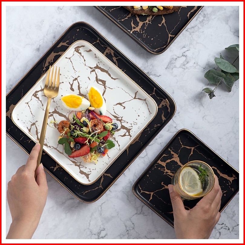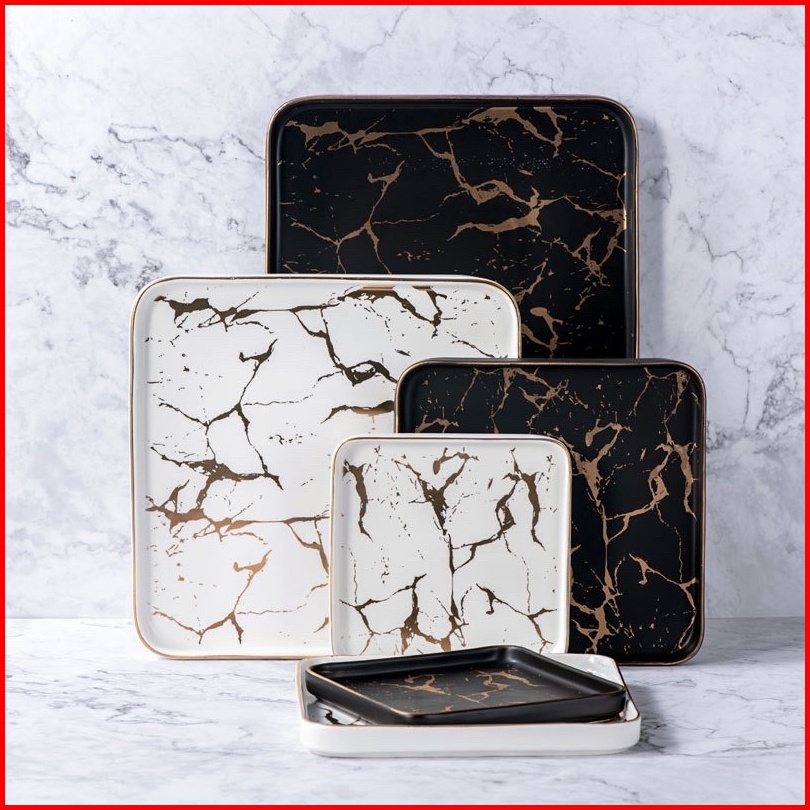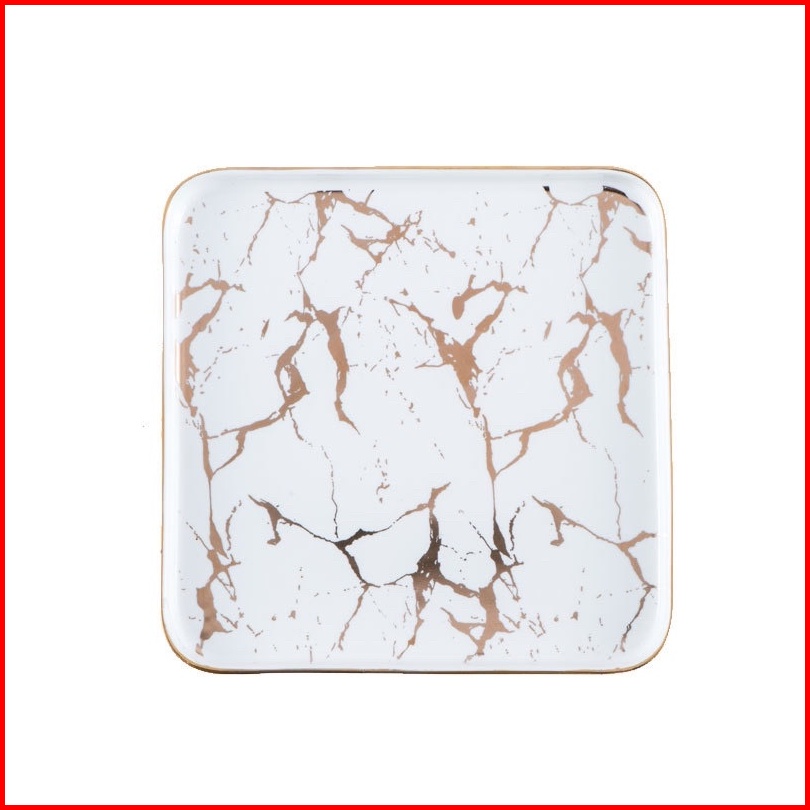 Crackle Plate Kotak Ceper Piring Marbel Piring Makan Marbel Piring Saji Mewah Piring Saji Marble