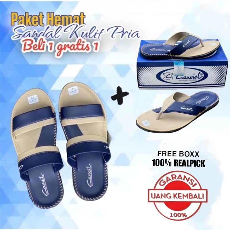 Sandal Pria BELI 1 GRATIS 1 Jepit Kulit Sendal Slop Slide Slip On Casual Laki Laki Dewasa sandal carvil
