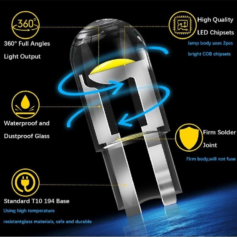 LAMPU LED SEN T10 W5W 12V RESIN FULL KACA Lampu Indikator