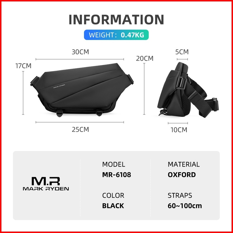 Mark Ryden Tas Selempang Pria Waist Bag Sling Bag Mr6108