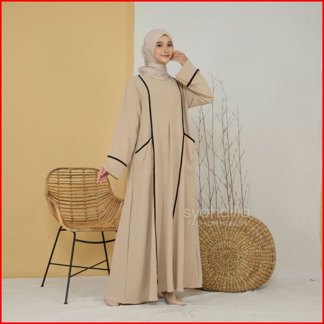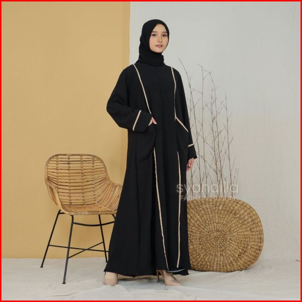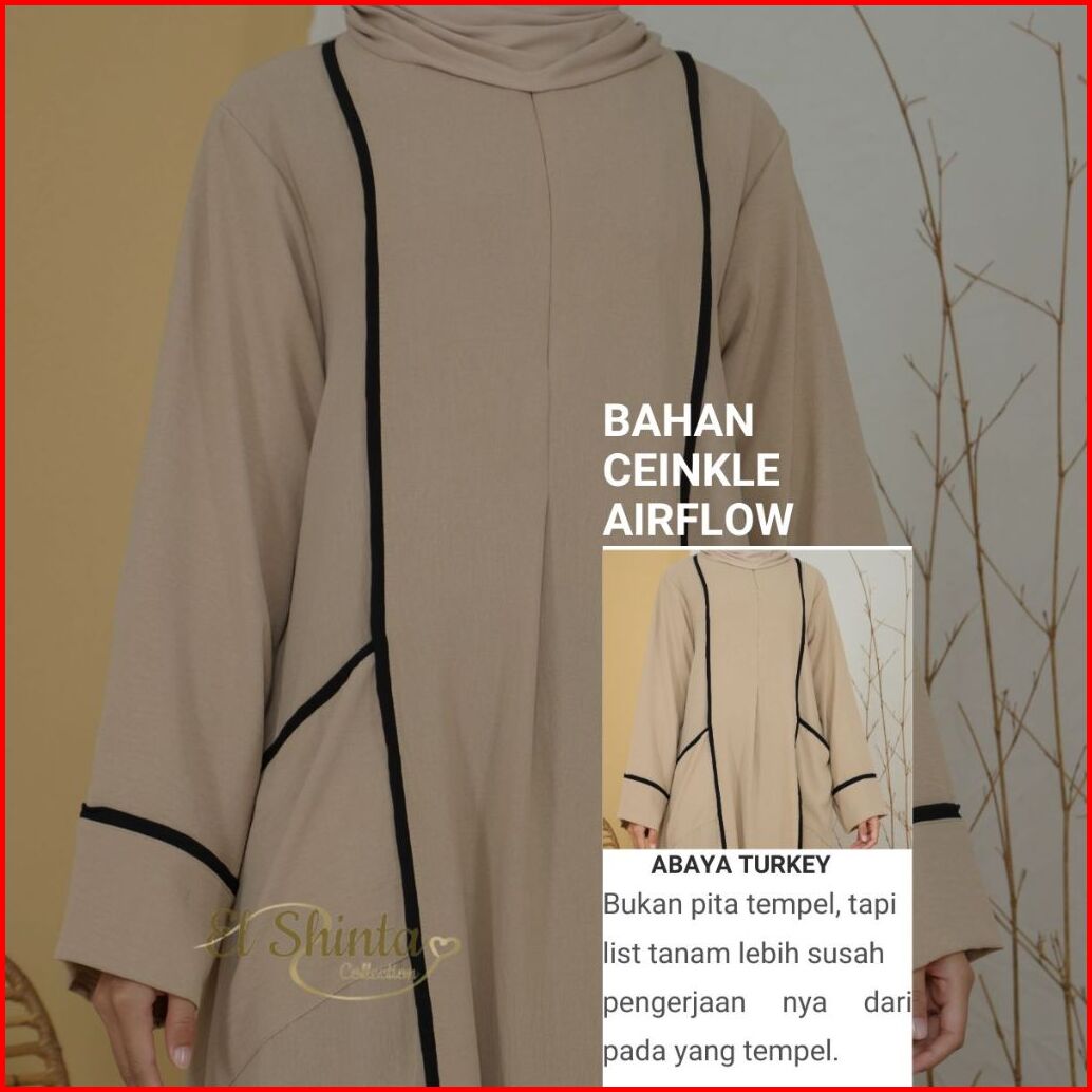 Abaya Syari Gamis Hitam Lis Turkey Dress Basic Arab Busui Dubai Turki Matt Cringkle Airflow Premium