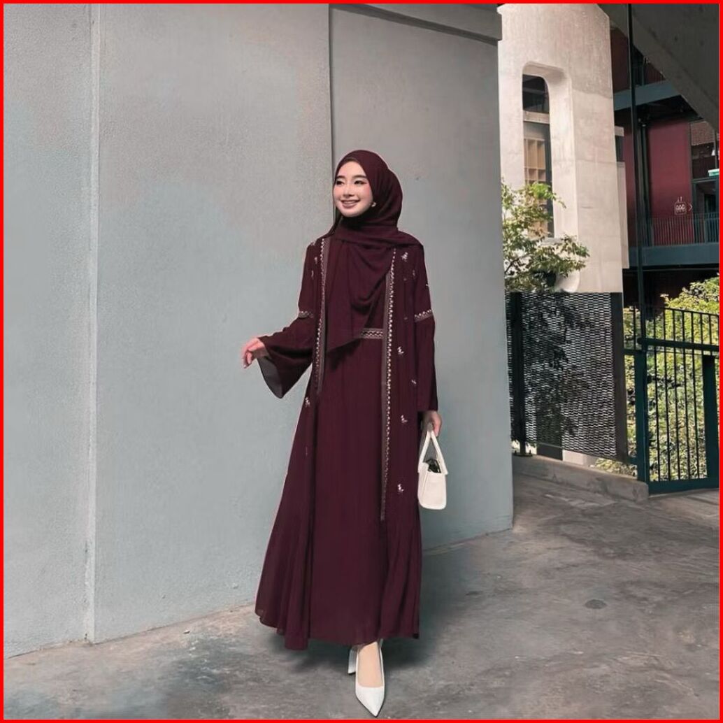 Safwa Abaya Terbaru Bahan Ceruty Babydoll Aplikai Bordir Pakaean Baju Gamis Abaya Turkey Syari Dress Polos Terbaru Gamis