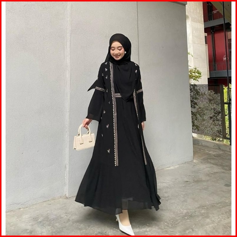 Safwa Abaya Hitam Turkey Gamis Kaftan Lebaran Ootd Kondangan Terbaru Bahan Ceruty Import Aplikasi Bordir