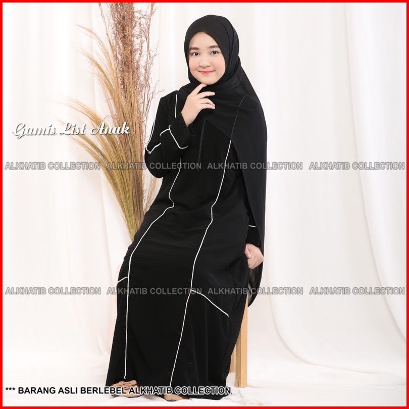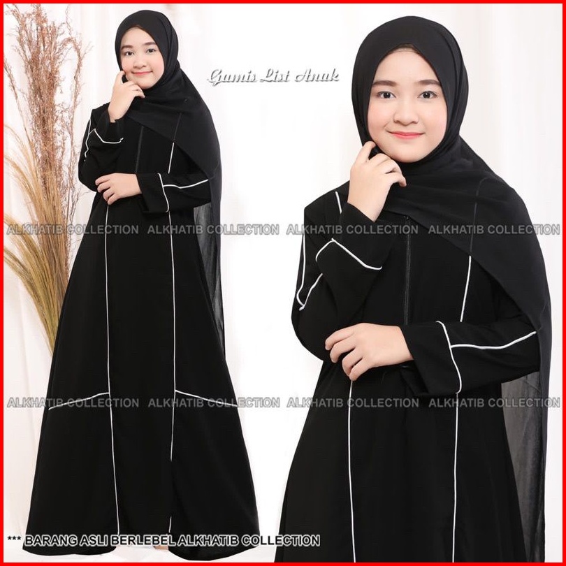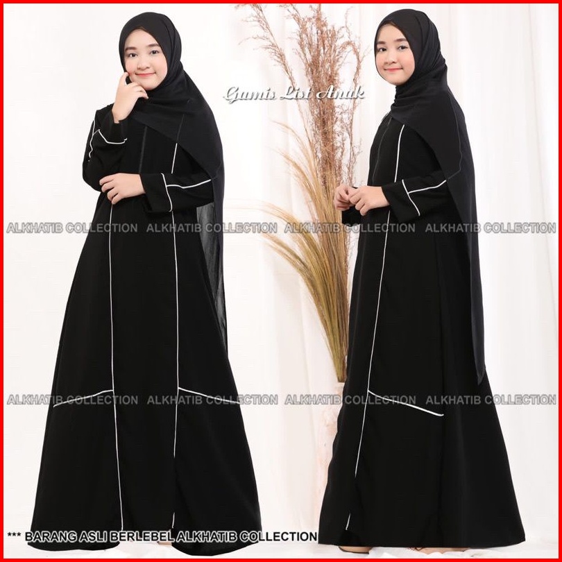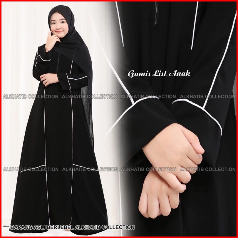 Abaya Anak List Putih Couple Mom N Kids Jetblack Exclusive Alkhatib Collection