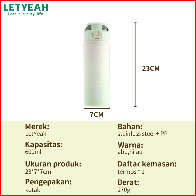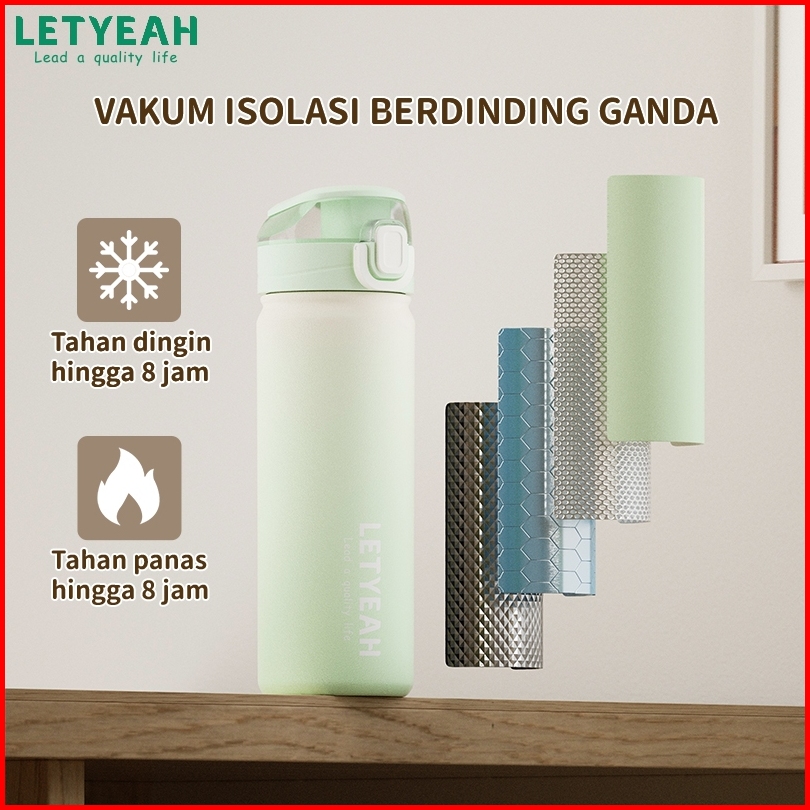 Sus316 Letyeah Aesthetic Tumbler Sport Stainless Steel 600ml Cangkir Termos Portabel Botol Minum Olahraga Vacuum Anti Bo