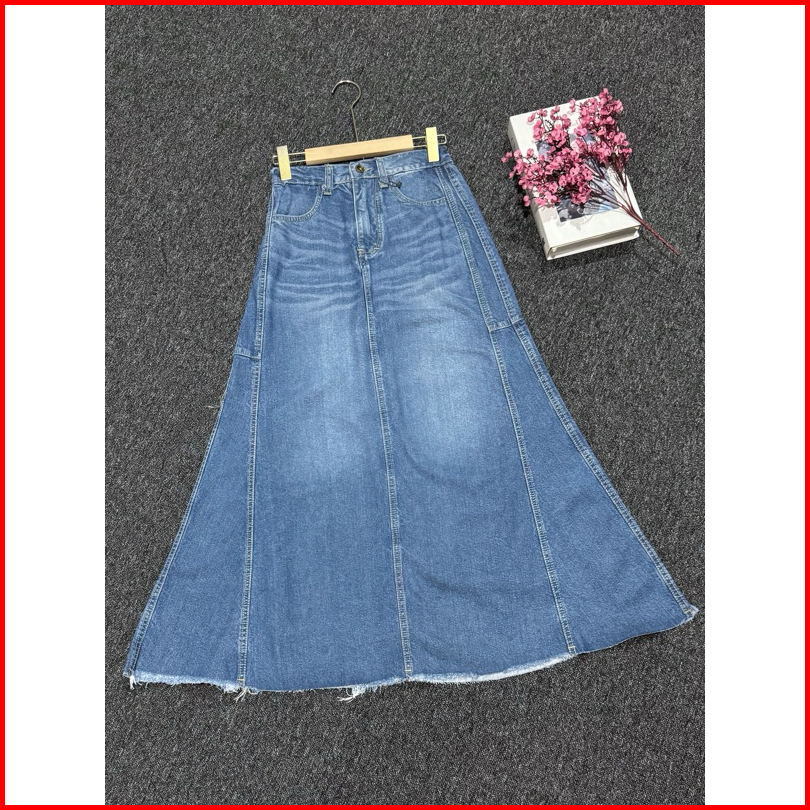 Ayra Bawahan Wanita Rok Jeans Aline Unfinished Skirt Jumbo Panjang Rawis