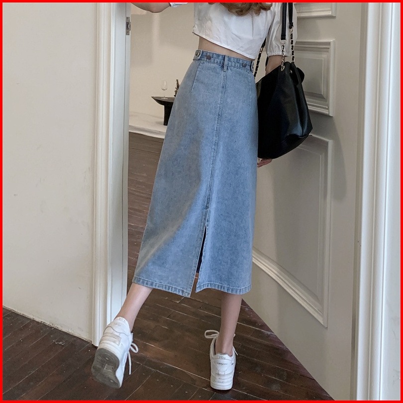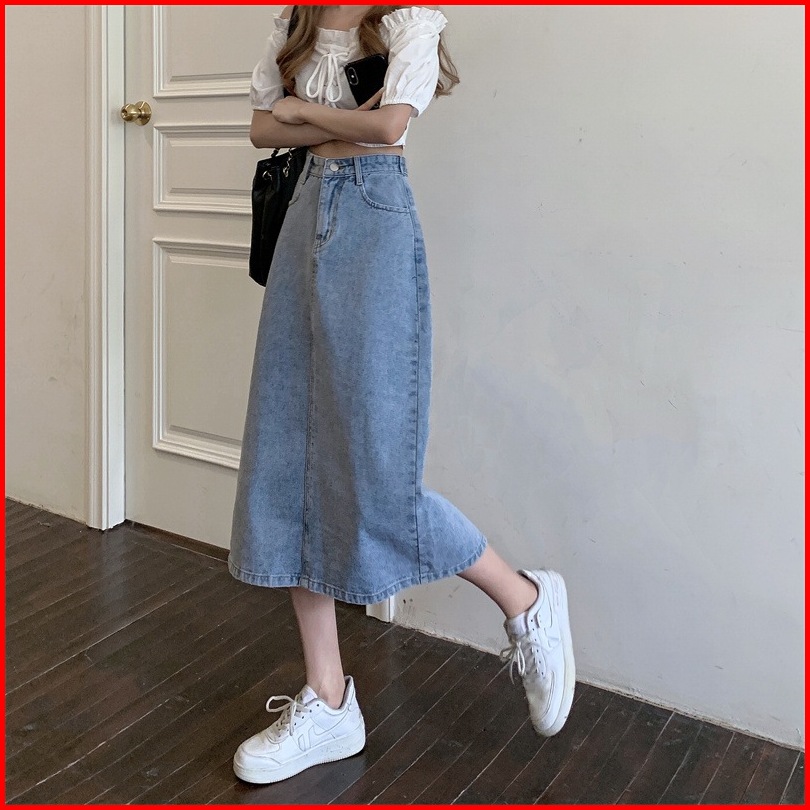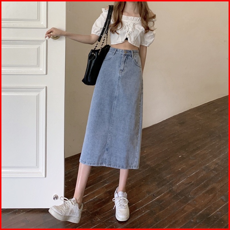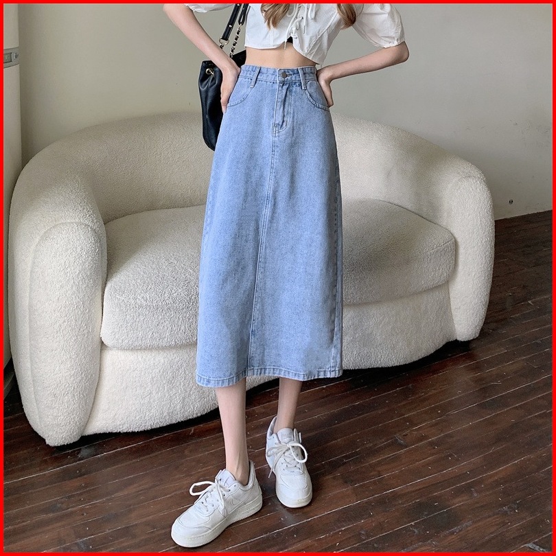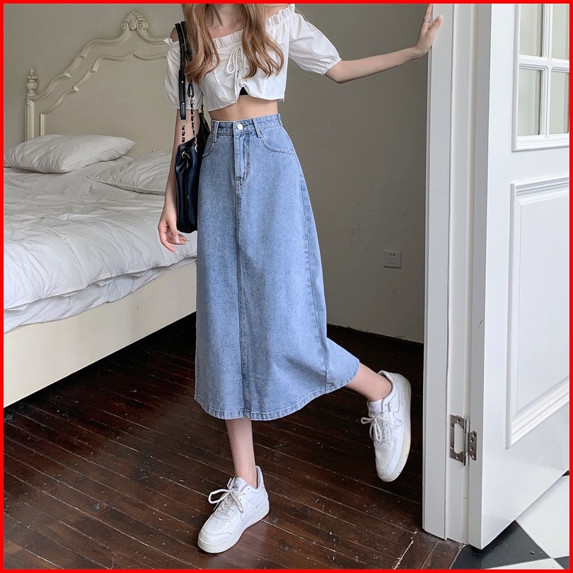 Rok Denim Korea Wanita High Waist - Rok Pendek Cewek Ootd Kekinian - Midi Skirt Terbaru 2025