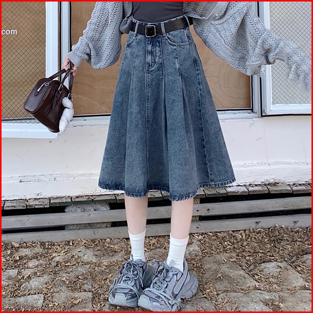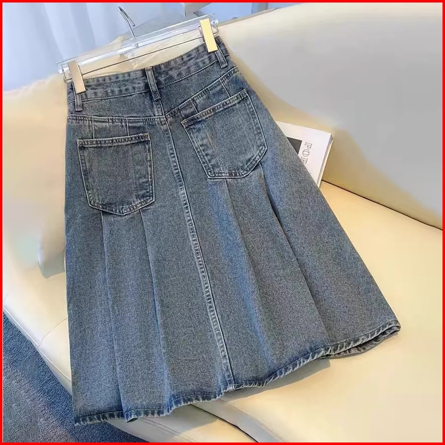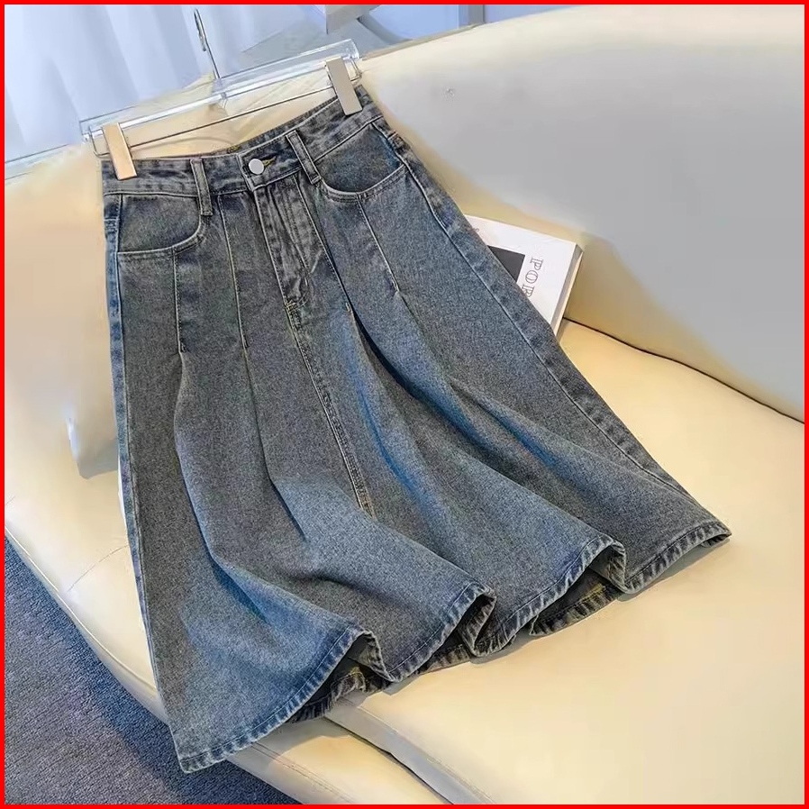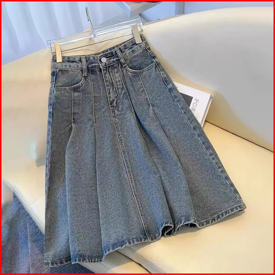 Kekinian.factory Jeans Rok Wanita Rok Bawahan Wanita Denim Jeans Lipit Pendek Korea Rok Plisket Jeans Cewek