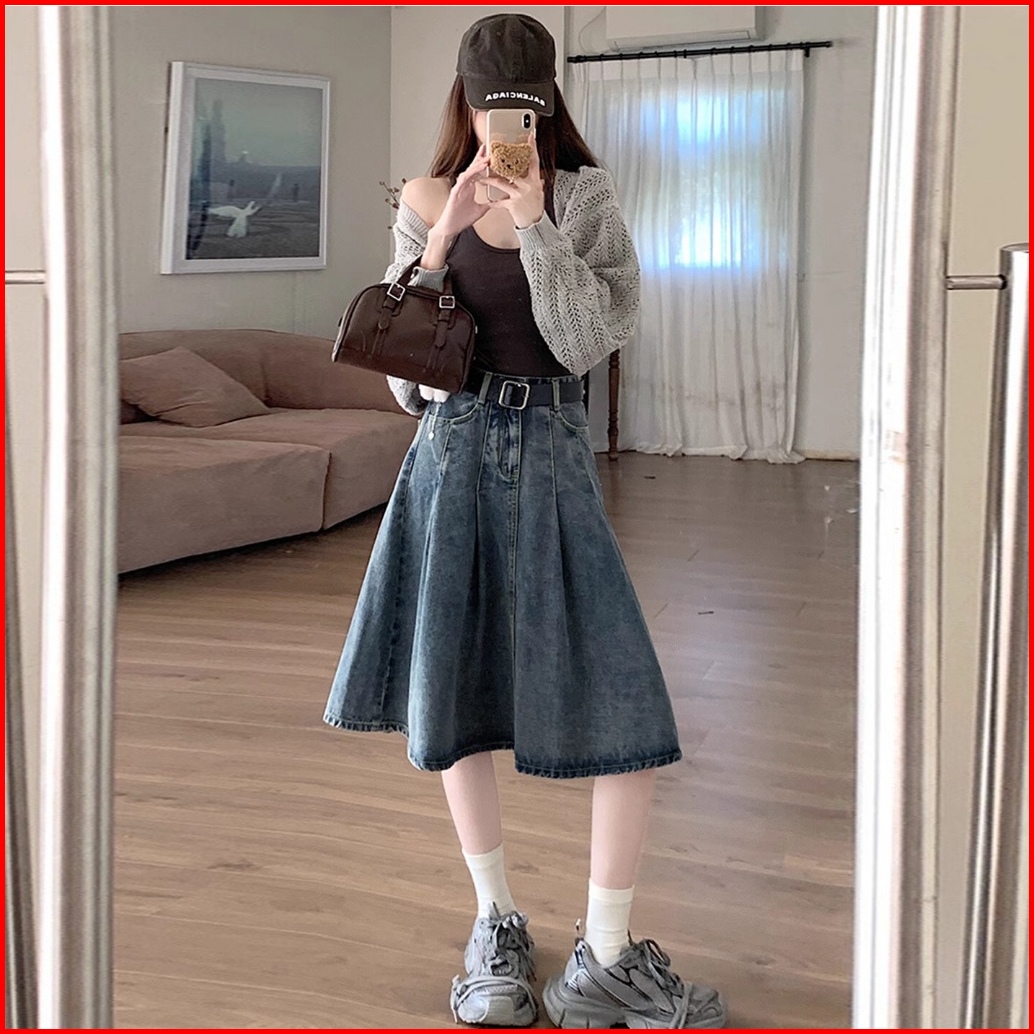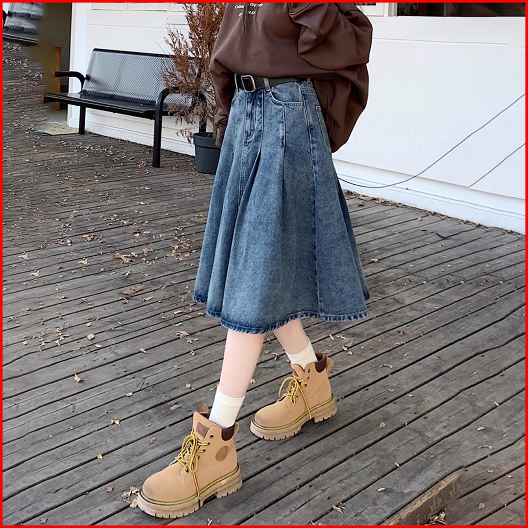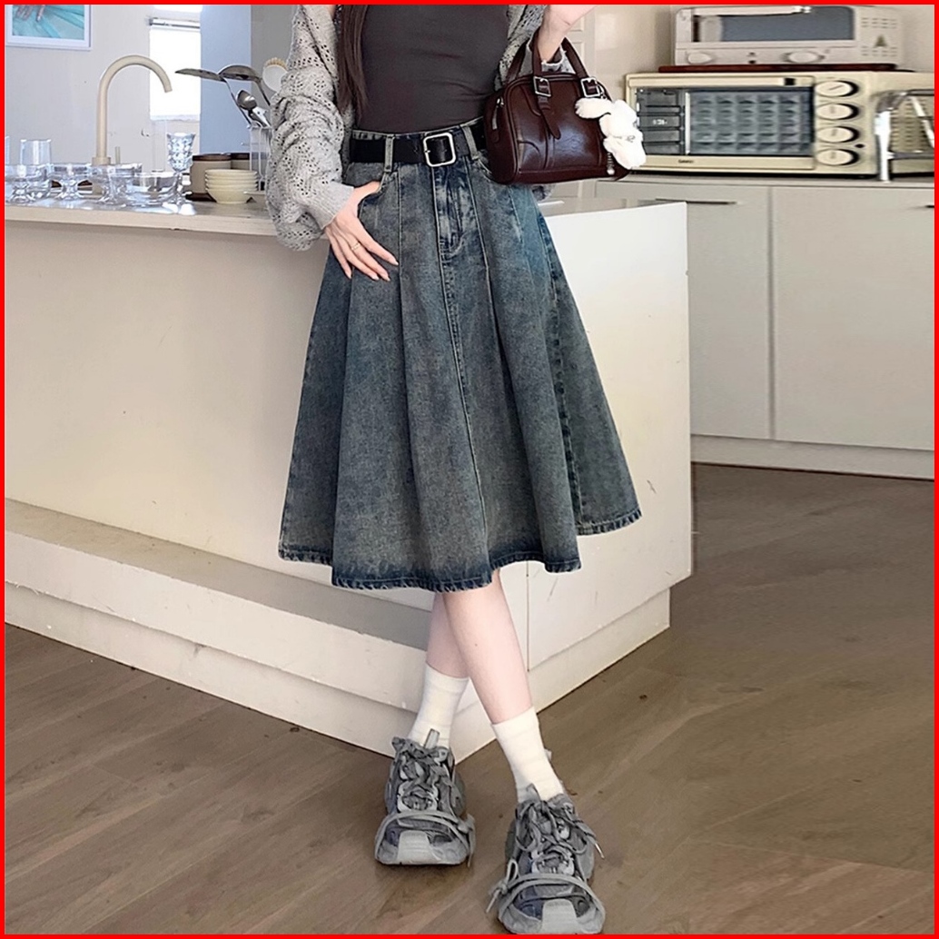 Kekinian.factory Jeans Rok Wanita Rok Bawahan Wanita Denim Jeans Lipit Pendek Korea Rok Plisket Jeans Cewek
