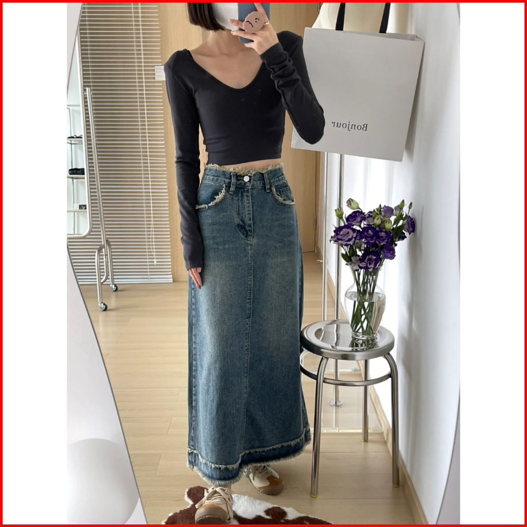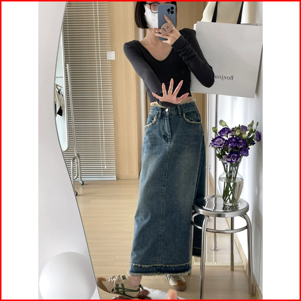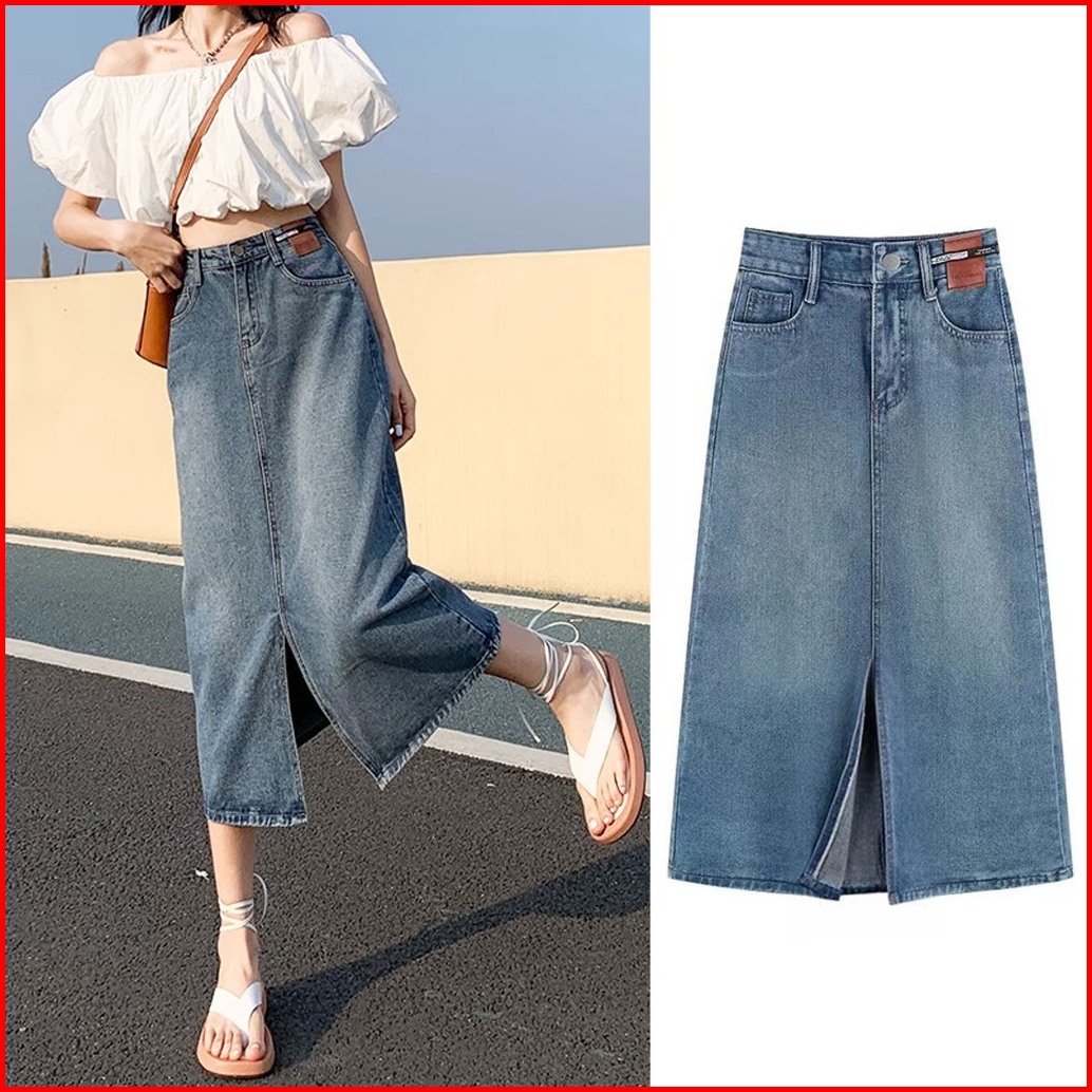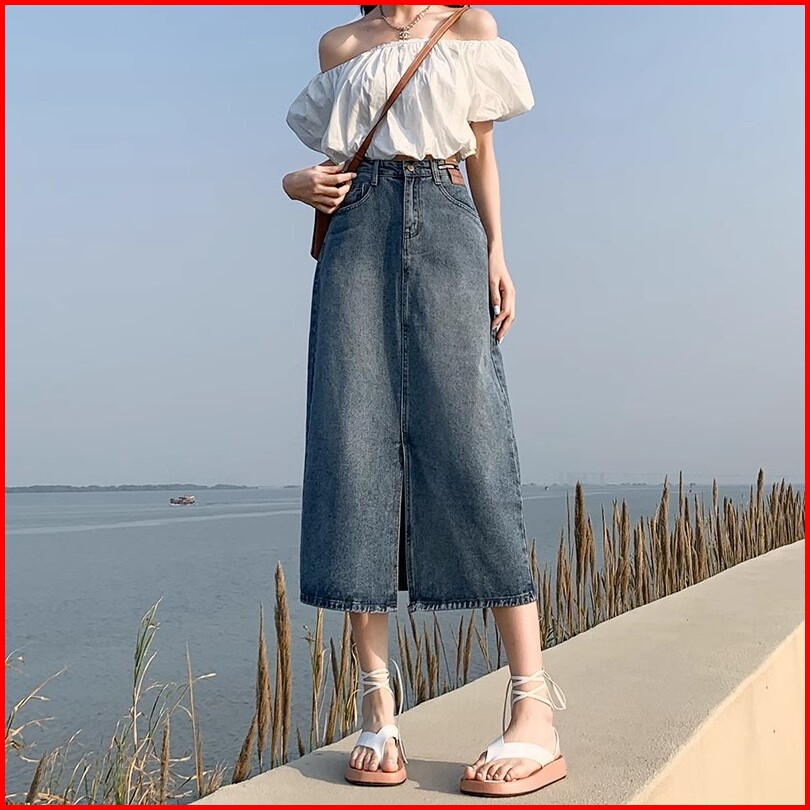 Keygirl Highwaist Rok Jeans Korean Skirt Belah Belakang Panjang Premium Denim Fashion Maxi