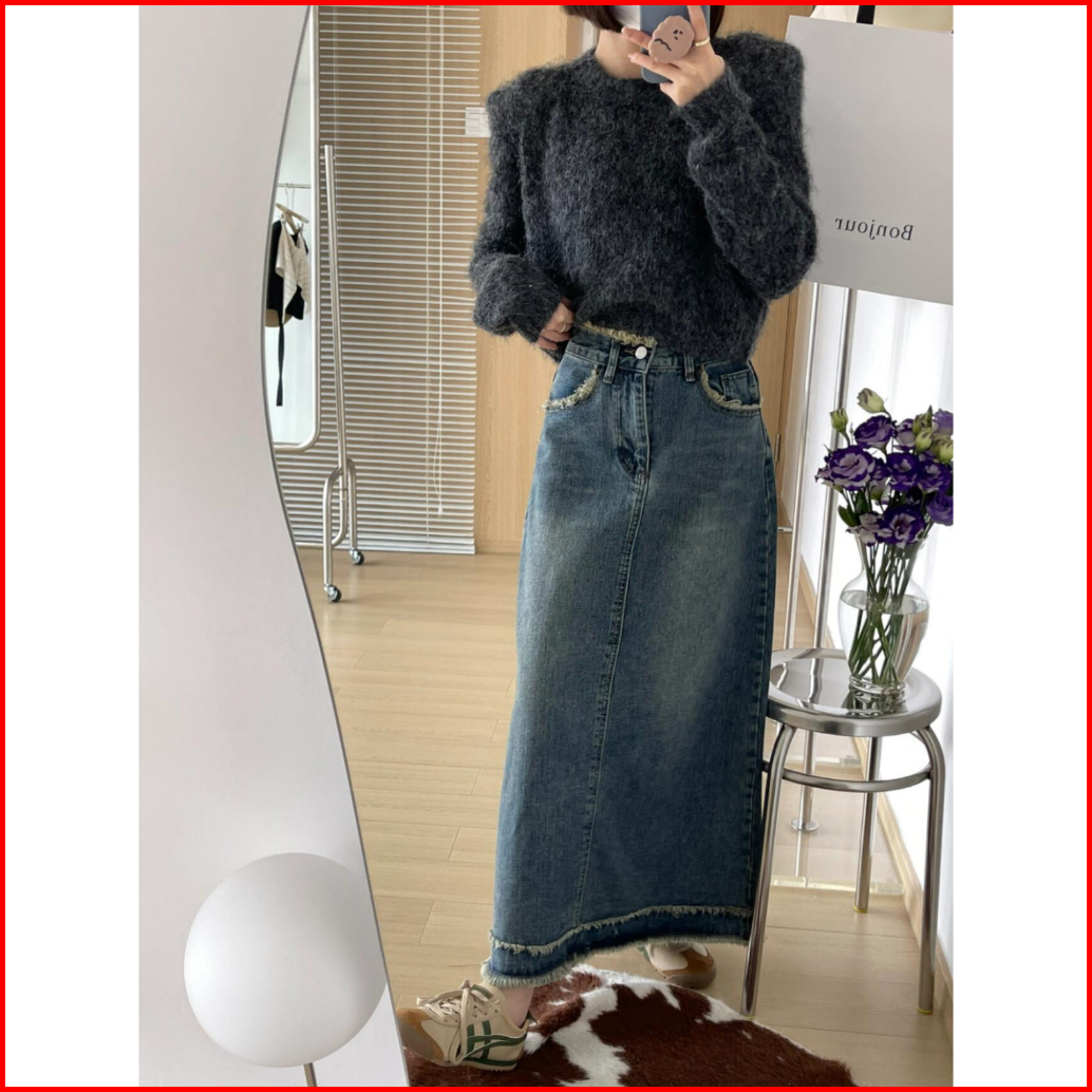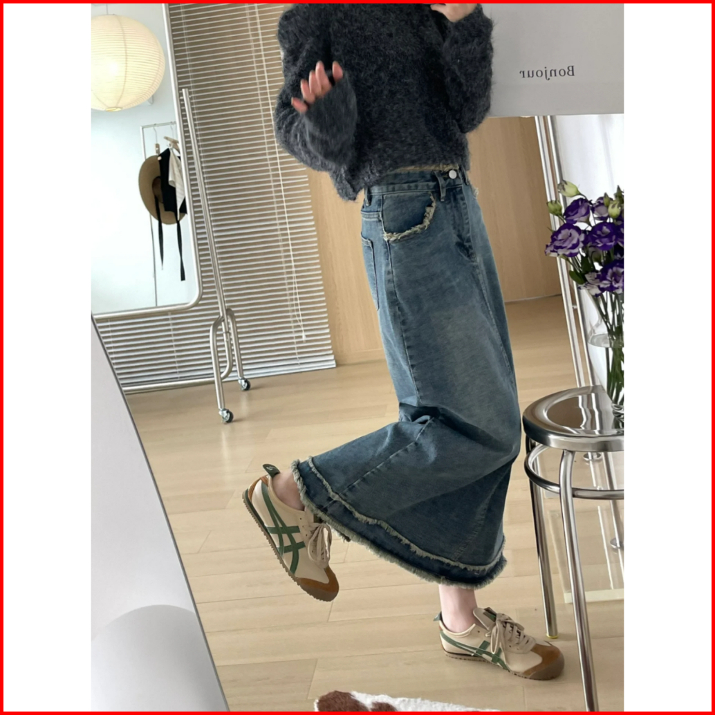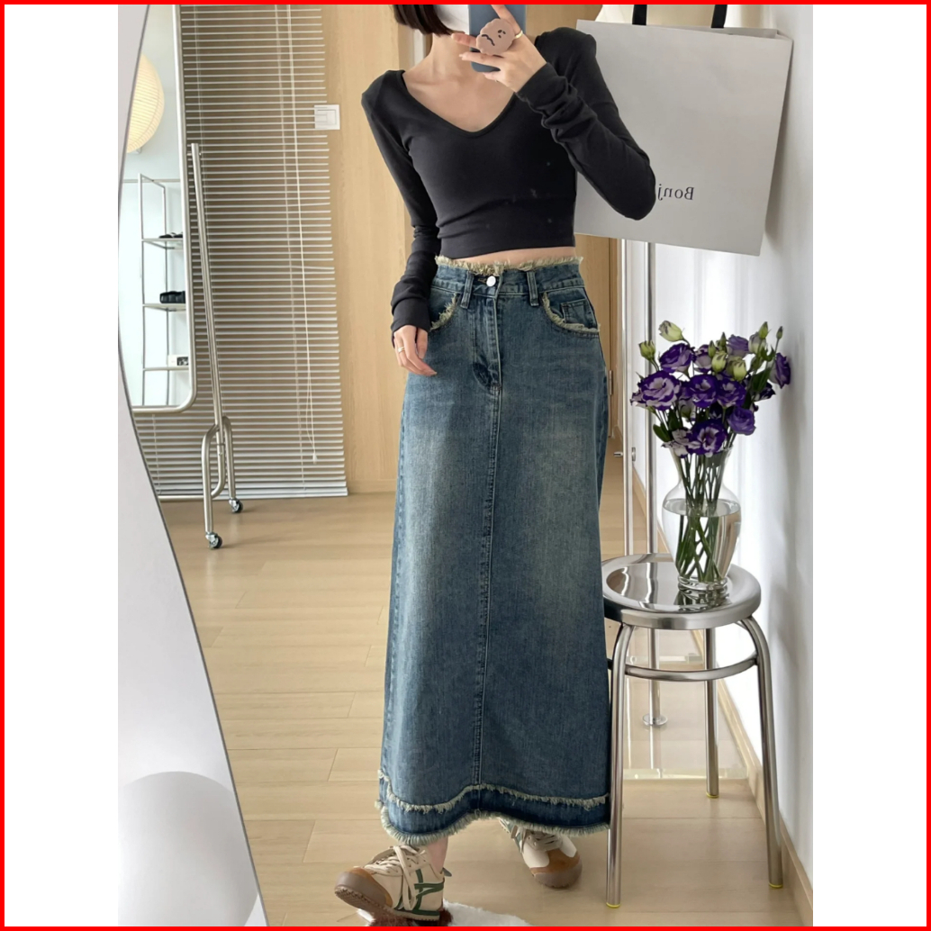 Keygirl Highwaist Rok Jeans Korean Skirt Belah Belakang Panjang Premium Denim Fashion Maxi