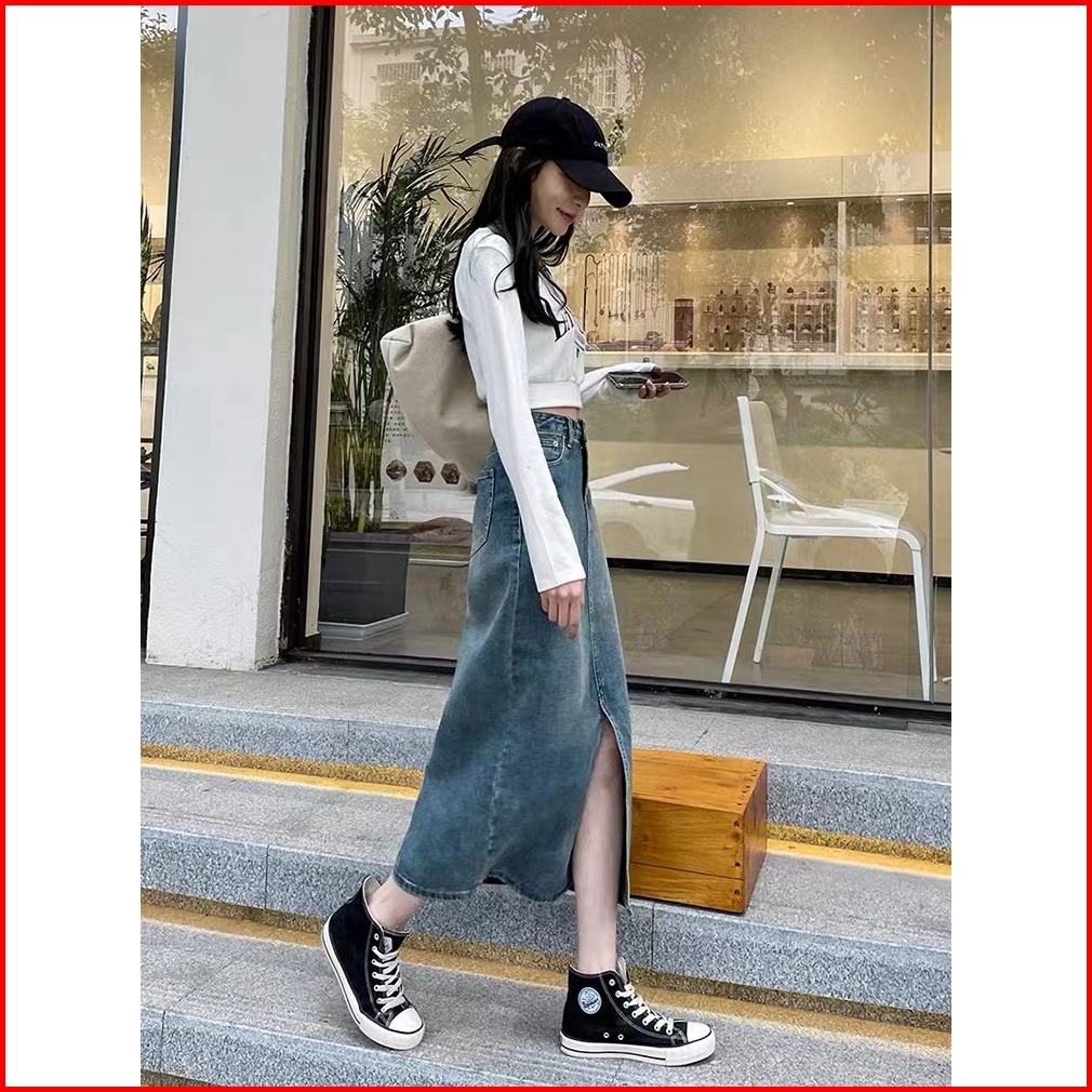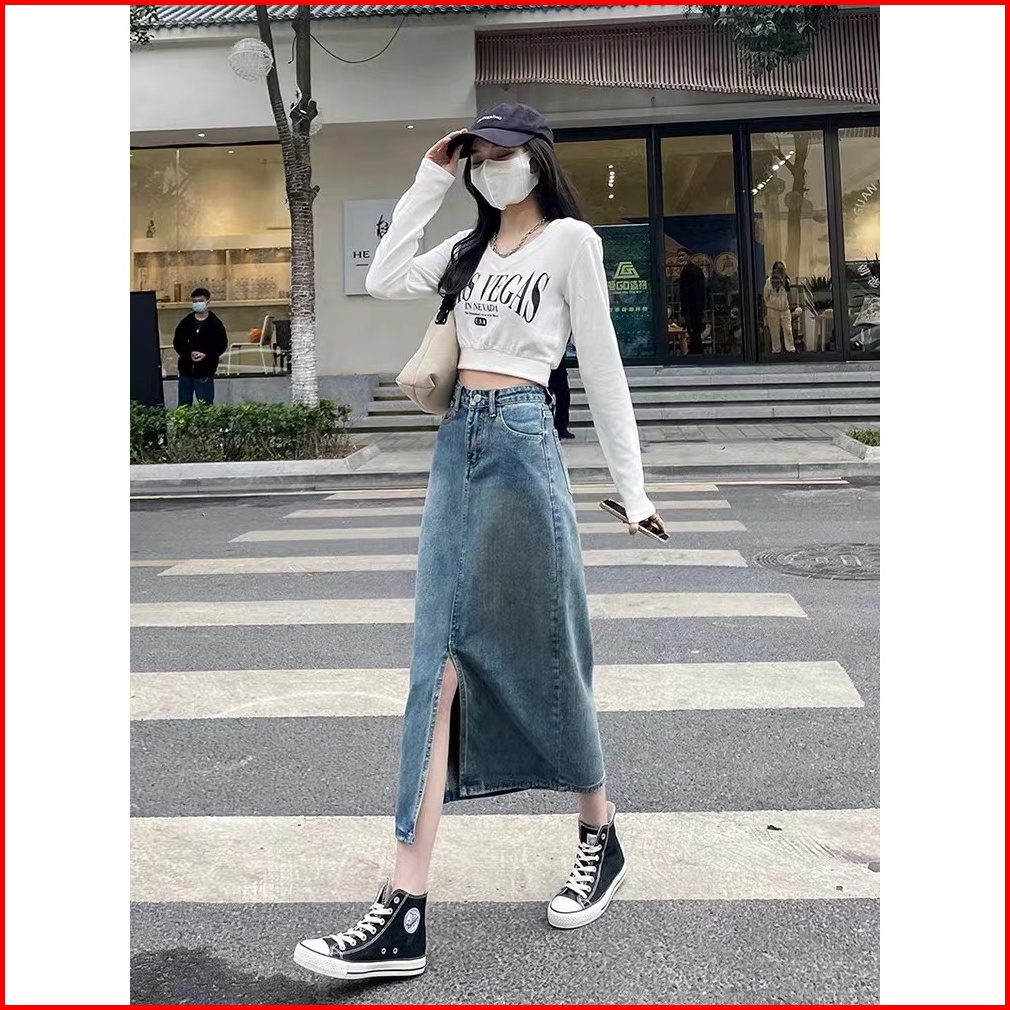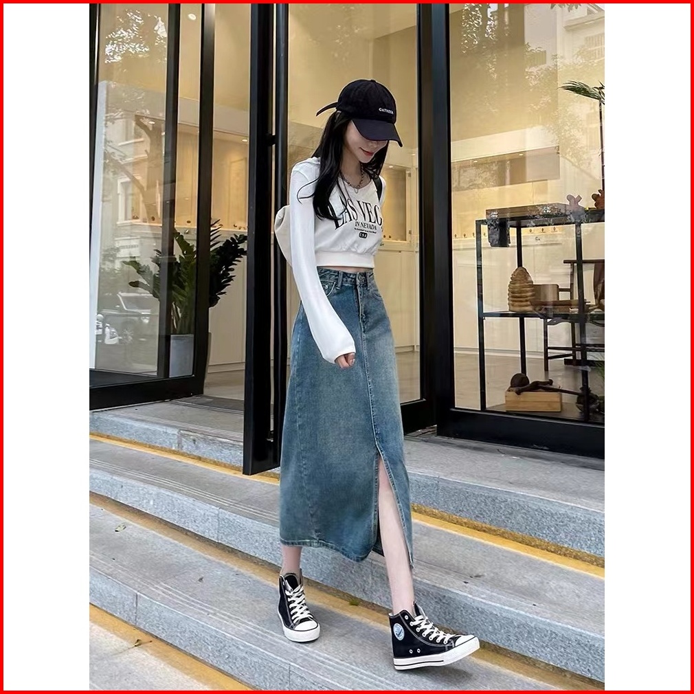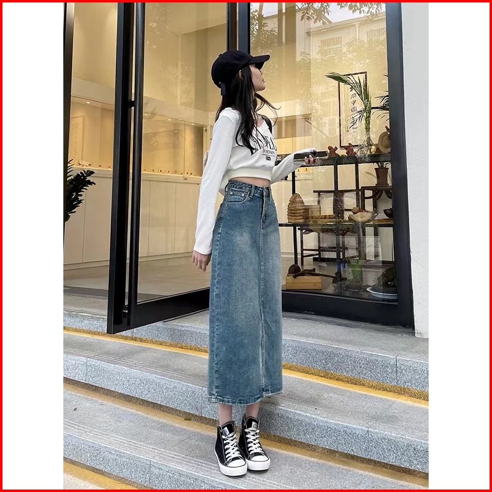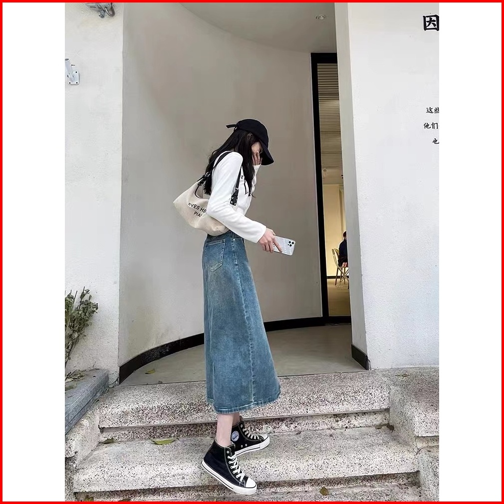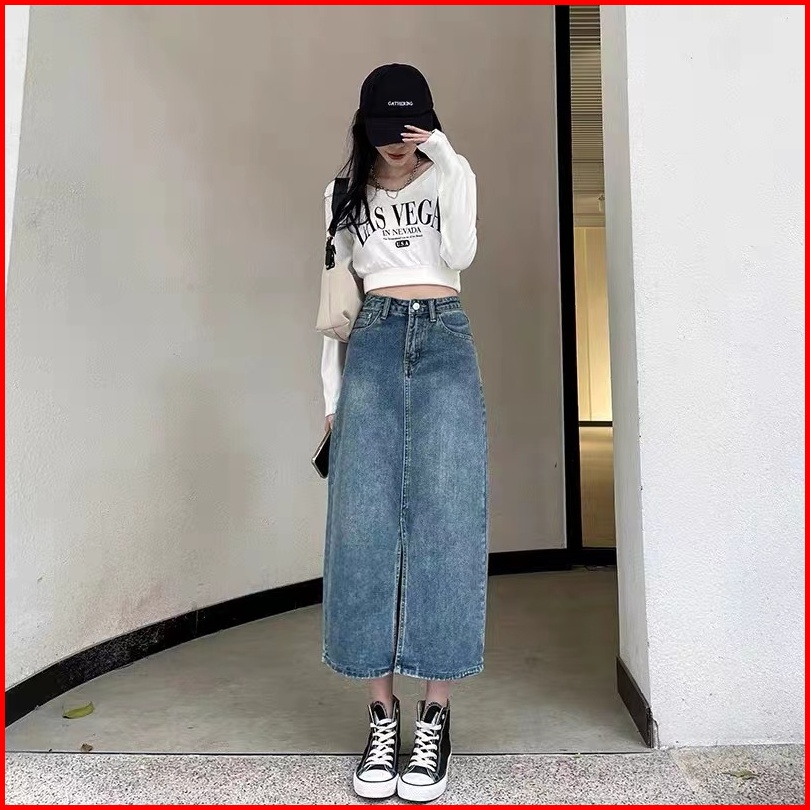 New Biru Highwaist Fashion Jeans Rok Wanita Korea Style