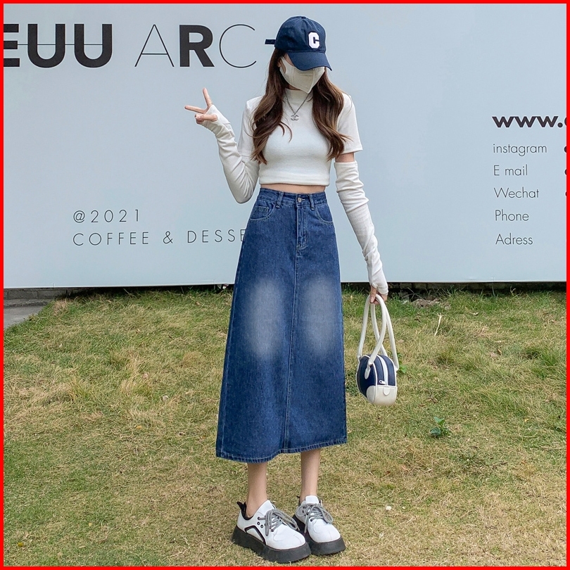 Wanita Id Rok Jeans Jumbo Rok Jeans Putih Rok A Line Rok Korean Style Rok Jeans 7 8 Rok Denim Panjang
