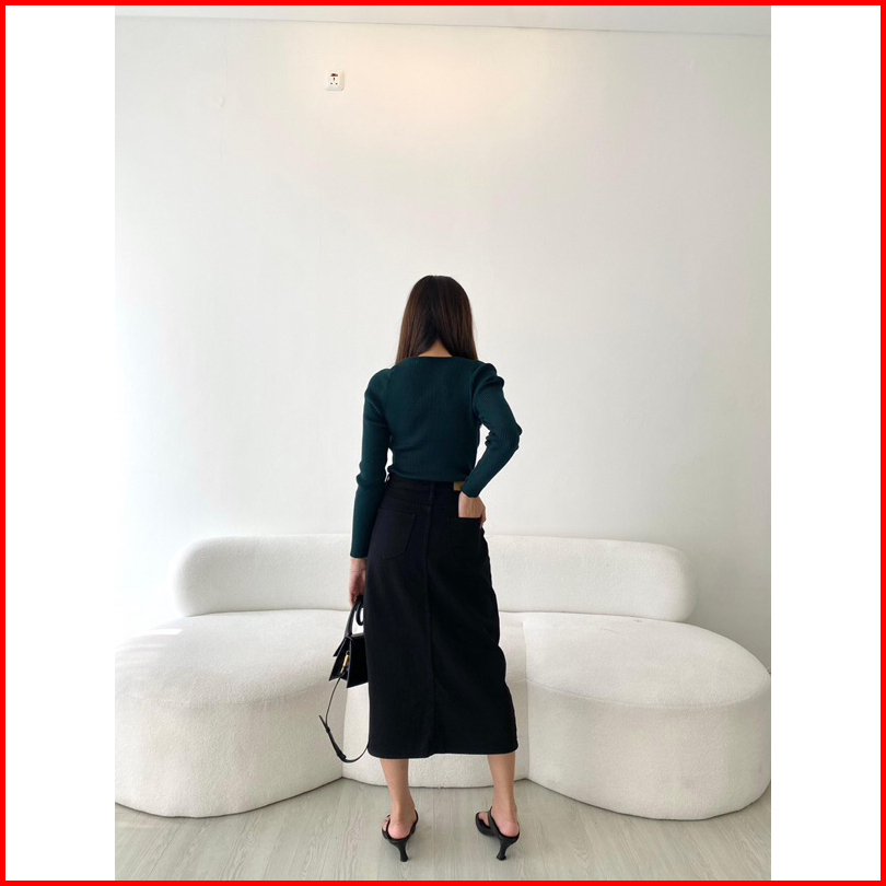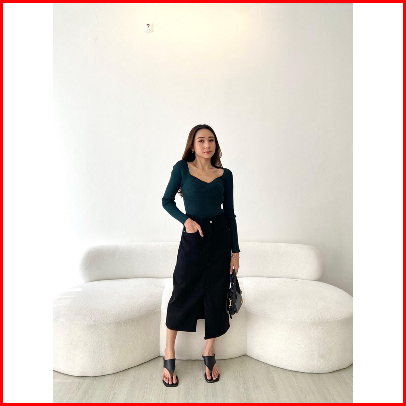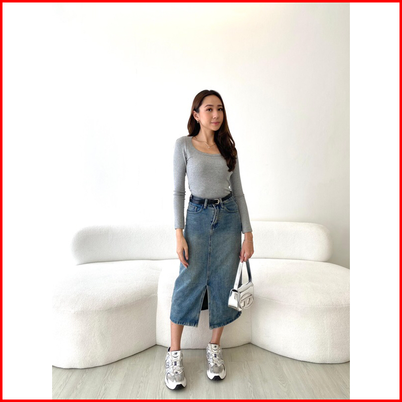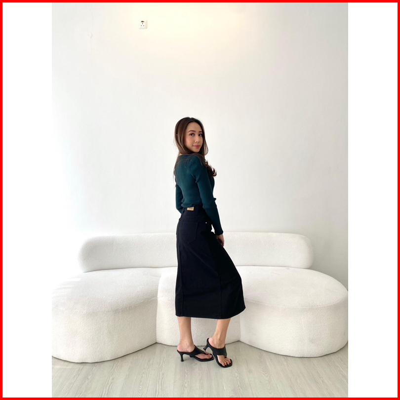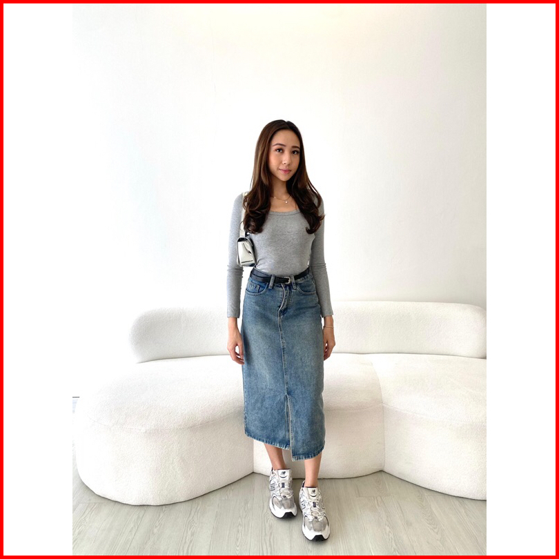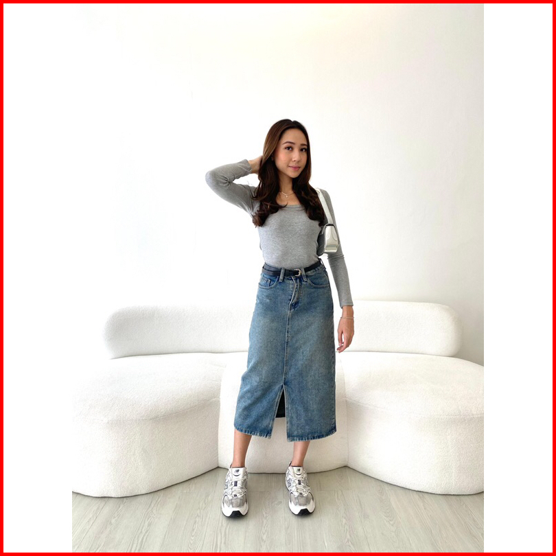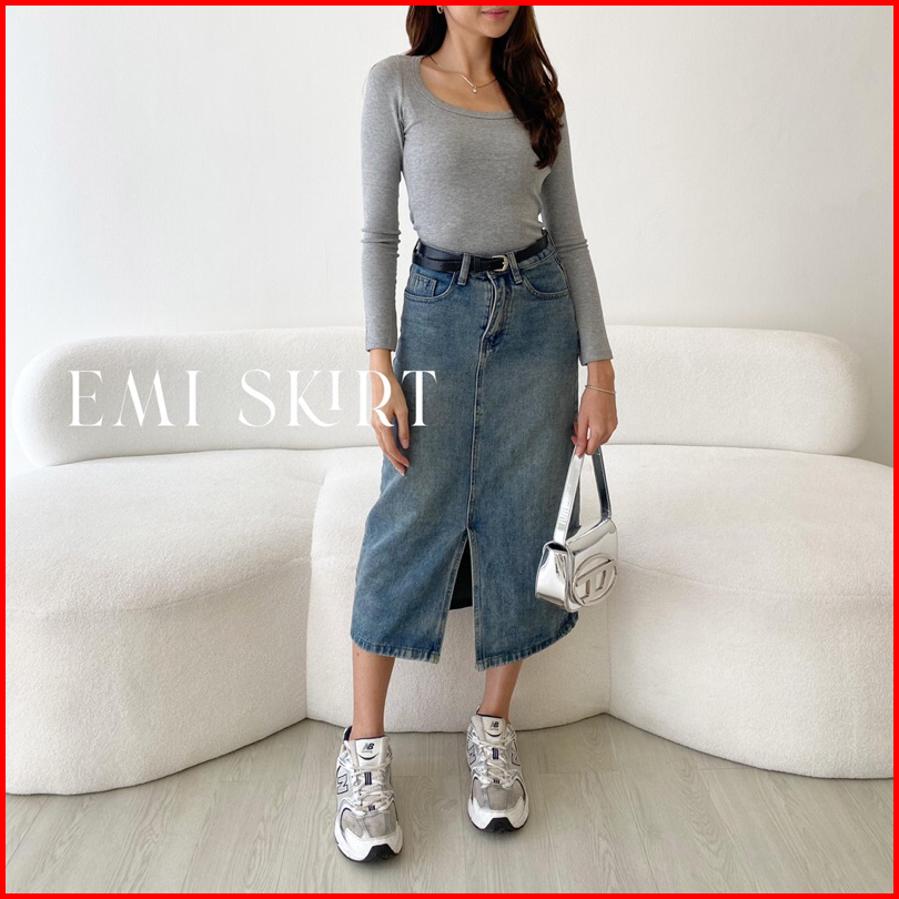 Sorinbyher Emi Denim Skirt Rok Jeans Wanita Midi Slit Jeans Skirti