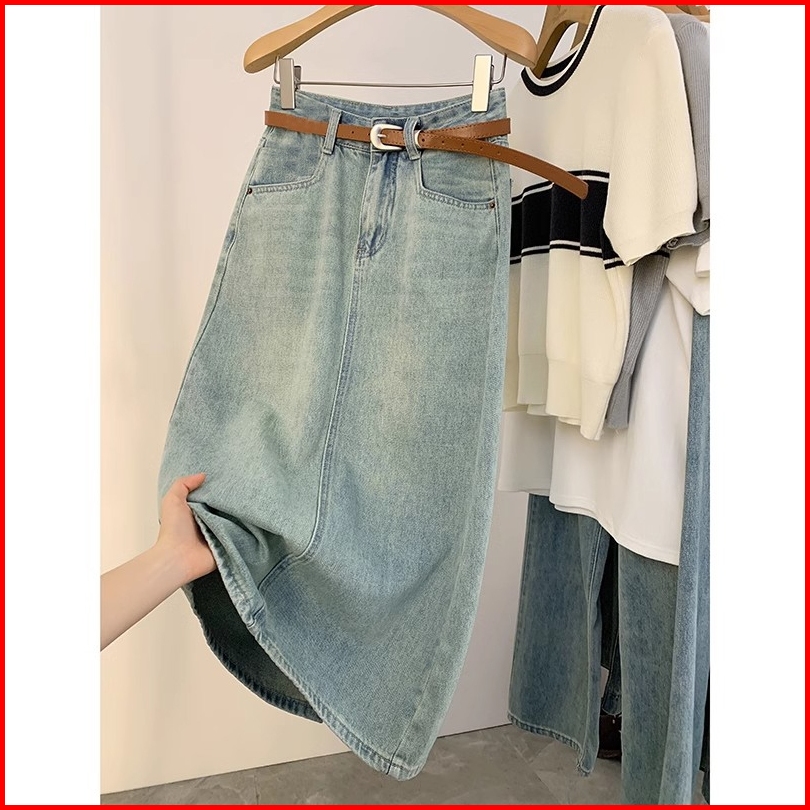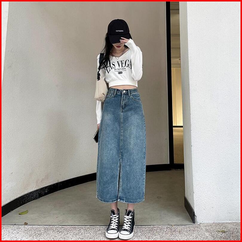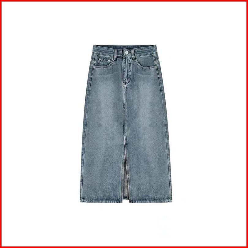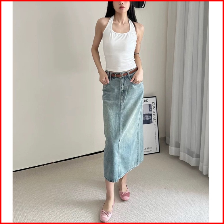 Rok Jeans Premium Import Highwaist Denim Korea Style Rok Jeans Belah Rok 7 8 Wanita Midi Skirt